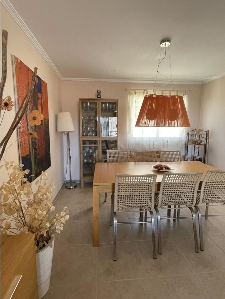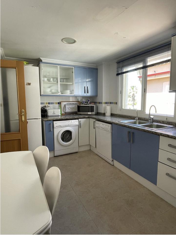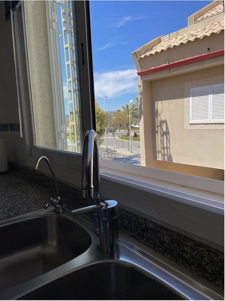 Corner townhouse on Malvarrosa Corinto beach, 31 km from Valencia. House of 220 square meters built and 196 useful. Distributed in 3 floors on a plot of 158 square meters: open-plan ground floor suitable for garage, bathroom with shower, storage room and paellero; first floor with dining room/living room, kitchen, and master bedroom with bathroom; second floor with 2 bedrooms, bathroom and 2 terraces. Hot/cold air conditioning, fully equipped kitchen, wi-fi, alarm, community pool.