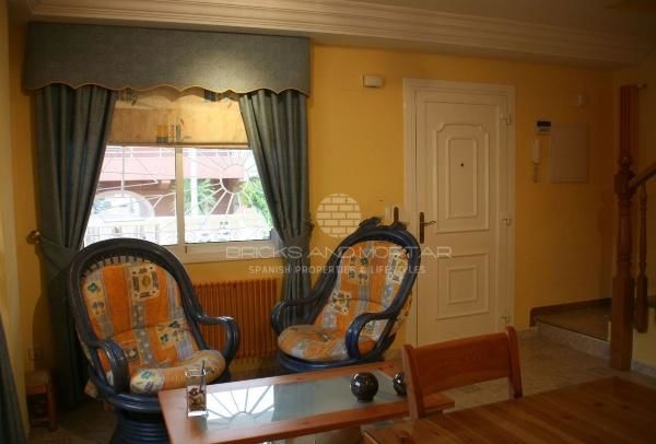 Great townhouse. consists of 3 bedrooms, living room, 3 bathrooms, a large kitchen, paellero, garage for two cars and a large terrace. Garden area, has heating with radiators design also has air conditioning throughout the house. The pool is communal but very quiet, only a few neighbours.