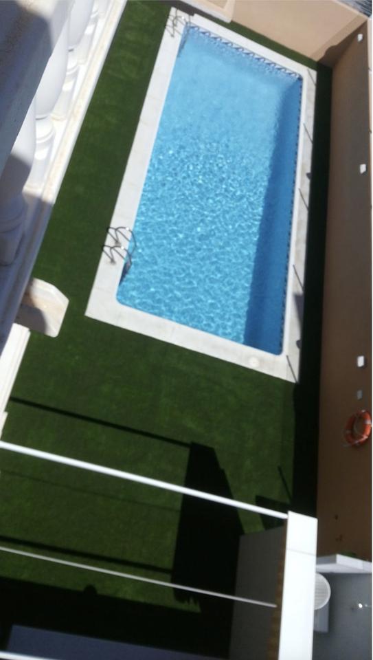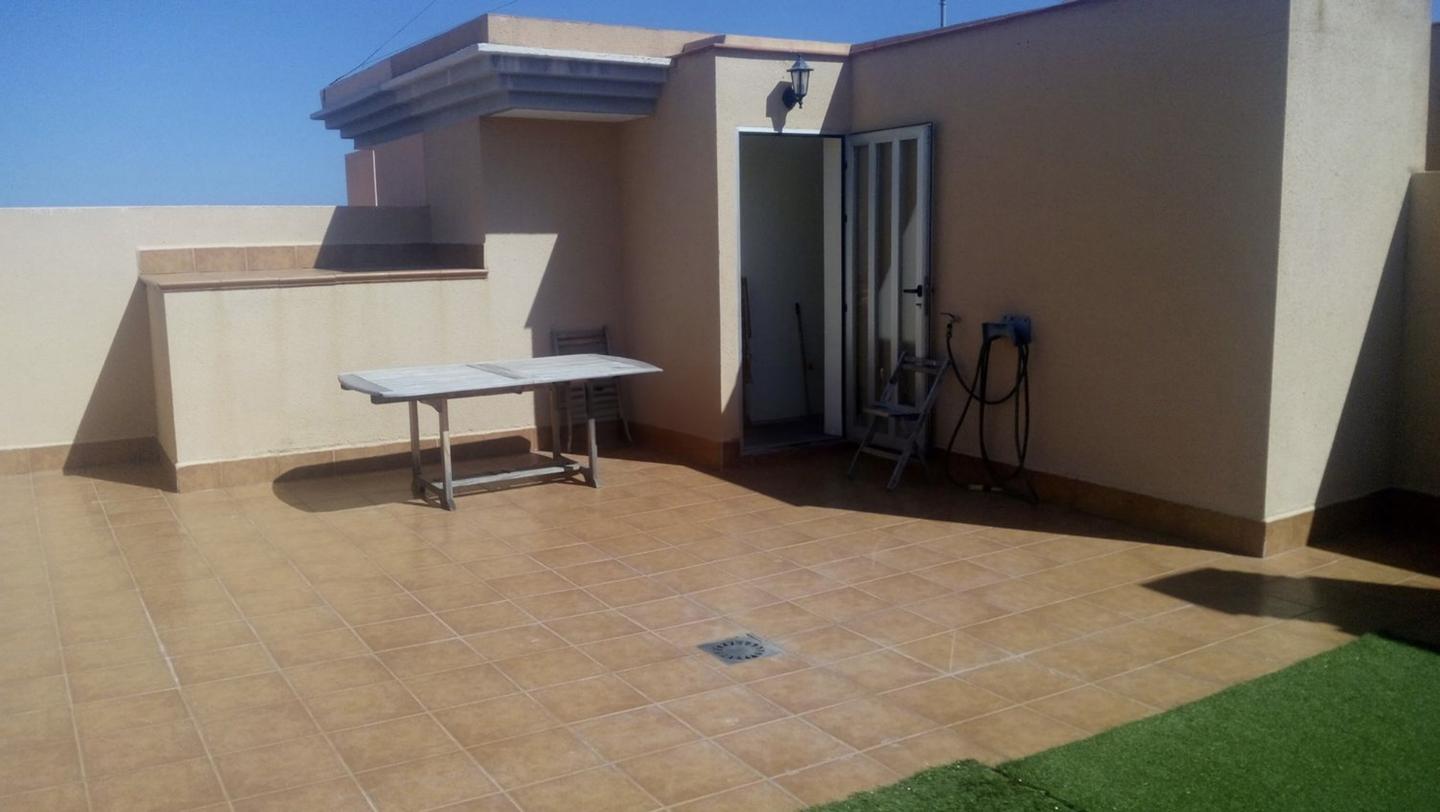 this penthouse is in perfect condition and comes fully furnished. With a total area of 100 m², out of which 50 m² is the usable space, this penthouse comprises of 2 bedrooms and 1 bathroom. Additionally, there is a 50 m2 terrace accessible through a staircase connected to the dining room, It also includes a garage space. With an east orientation towards the swimming Pool, this penthouse is located on the third floor with an exterior view accessible by an elevator. It was constructed in 2005 and benefits from air-conditioning, ensuring a comfortable living environment.