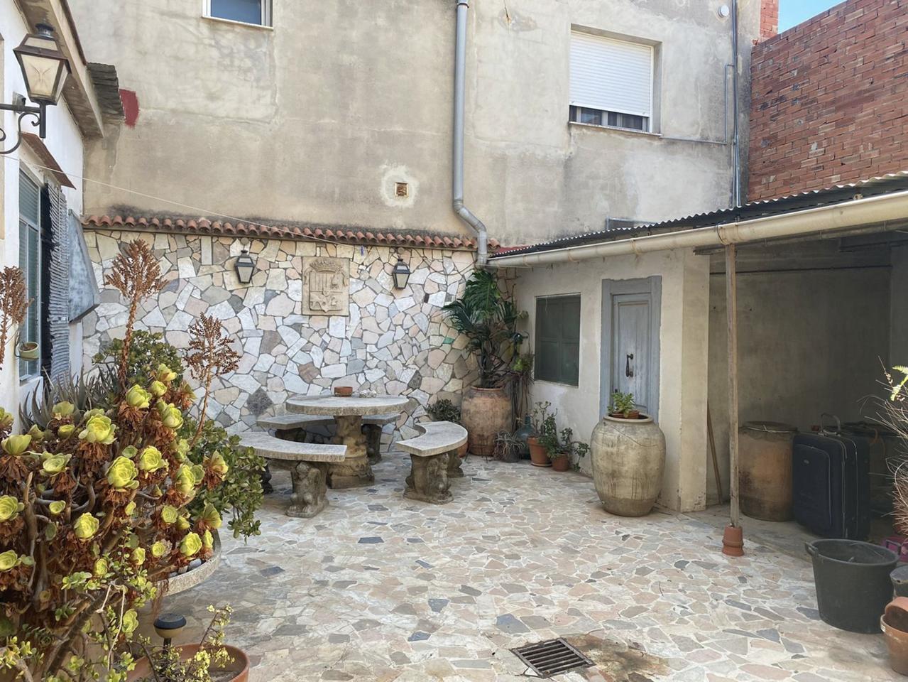 This property is a spacious townhouse, featuring a garage, attic, and a fireplace. It offers the convenience of having entrances from two streets, a serene patio, and is located in a peaceful area with access to all essential services. With 320 square meters of built space (260 square meters usable), it boasts five bedrooms, two bathrooms, a terrace, and comes with the option for renovation. Additionally, the house is equipped with built-in wardrobes, a storage room, and air-conditioning, making it a versatile and comfortable living space.