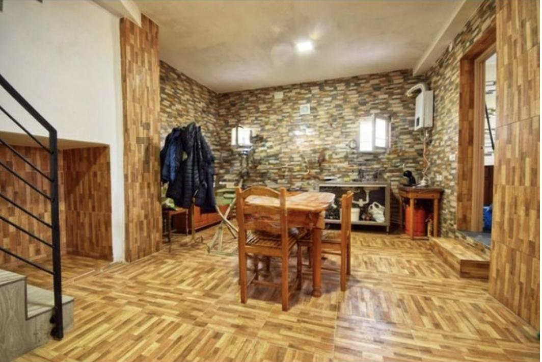 The rustic villa is designed all on one level, covering 140 square meters of built space and featuring four bedrooms and two bathrooms. It’s set on a 10,000 square meter plot with a terrace, balcony, and a fireplace. A garage space is included in the price. The property is in good condition and faces east. Heating is provided by individual propane/butane gas heaters.