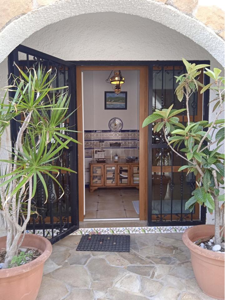 This detached villa is situated on Vinaros’ north coast, close to the sea and the Triador coves. Spanning 180 square meters of living space on a 273-square-meter plot, the ground floor encompasses a hall, 3 double bedrooms, 2 full bathrooms (one en suite), and a storage room. The main floor features a living-dining room with a fireplace, a semi-independent kitchen, 1 toilet, and a lovely terrace boasting sea views and a sliding awning. Additional amenities include radiator heating, air conditioning, window bars, a storage-laundry room, covered parking, and it comes fully furnished and equipped.