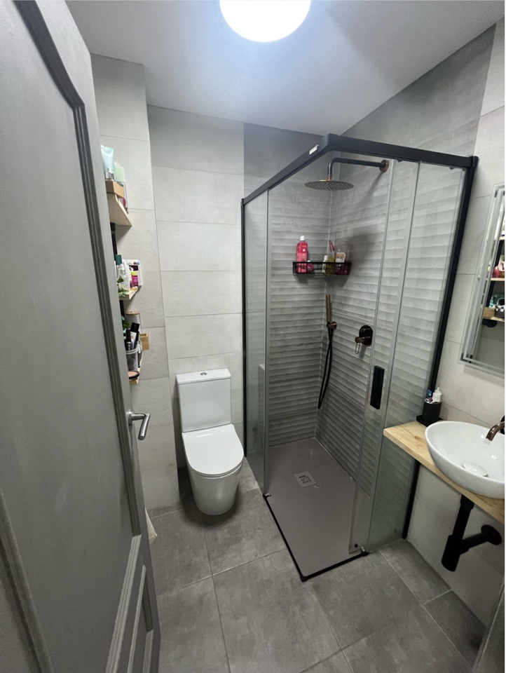 Upstairs, the second floor hosts two bathrooms—one with a bathtub and the other with a shower. A luminous, domotized living room boasts monitored double glazed windows, a pellet stove, and air conditioning, accompanied by an open kitchen. The three bedrooms include the main room equipped with air conditioning, a monitored double glazed window, and a Wi-Fi-enabled radiator, while another bedroom features monitored climalit windows. The third bedroom, currently serving as a dressing room, offers flexibility for customization. Additionally, a pantry room adds convenience to the floor plan.