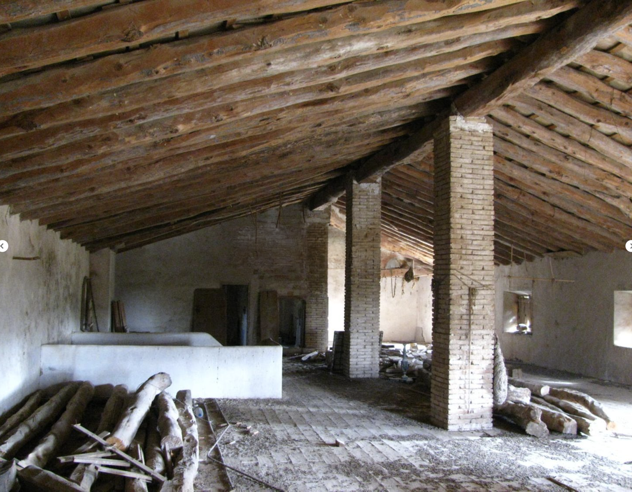 The remaining areas of the structure exhibit a distinct agricultural character, featuring an open patio spanning 60 square meters, a covered area of 90 square meters, a winery, cellar, stable, and supplementary rooms totaling 220 square meters. While the property maintains good structural integrity, it warrants renovation and comprehensive rehabilitation to ensure habitability.