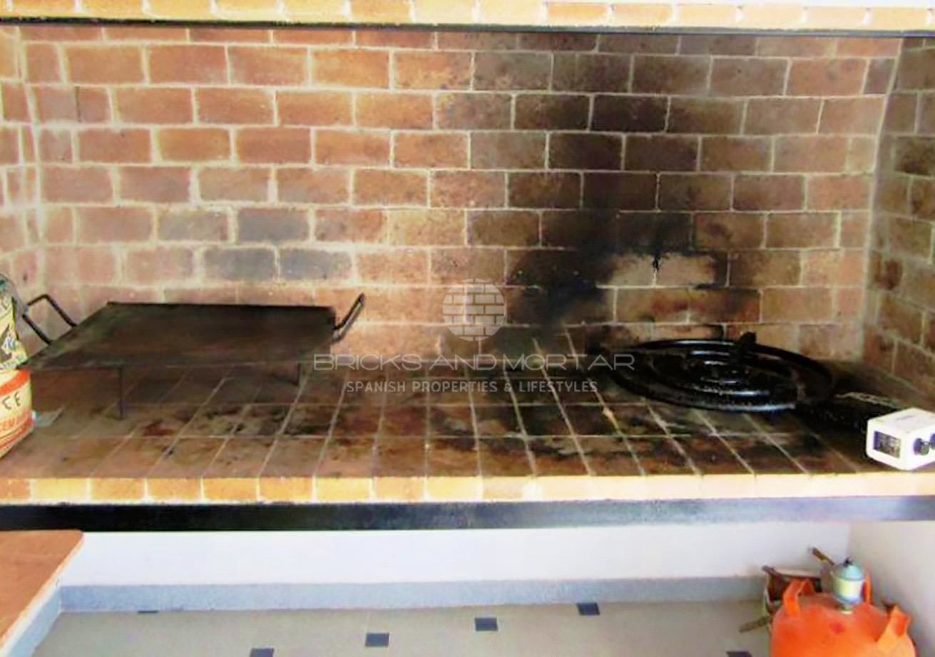 On the first floor of the house there is a large dining room with an open plan kitchen, where you can have more than 40 people to enjoy lunch with you, a wine cellar, a bathroom, an indoor place where you can cook paella and a large outdoor barbecue.