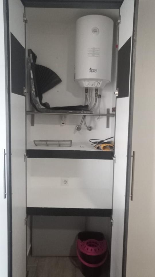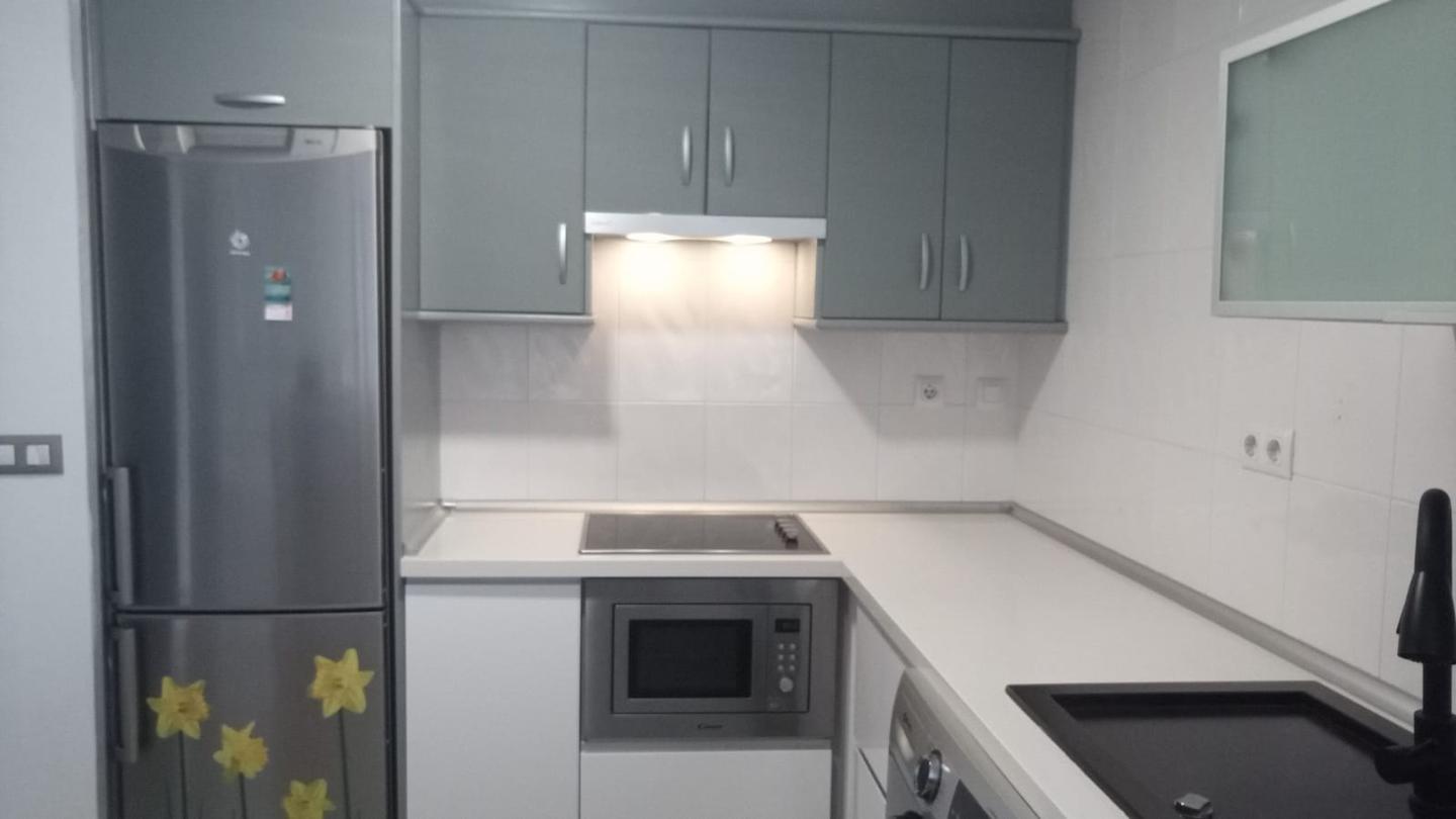 This 17-year-old building, located just 150 meters from Pau Pi Beach, has been fully renovated and is ready for you to move in. It features modern comforts such as hot/cold air conditioning, an electric fireplace, and a three-year-old electric water heater. The bathroom includes a hydromassage shower, while the Climalitt aluminum carpentry and porcelain flooring add to the sleek, contemporary feel. The property is equipped with mosquito nets on all windows and the entrance door, and the Silestone countertops and built-in wardrobes in each room offer both style and functionality. The terrace is shaded with an awning, making it a perfect space for outdoor relaxation.
