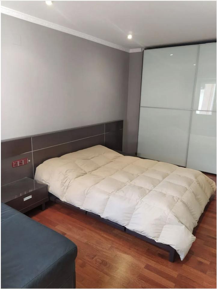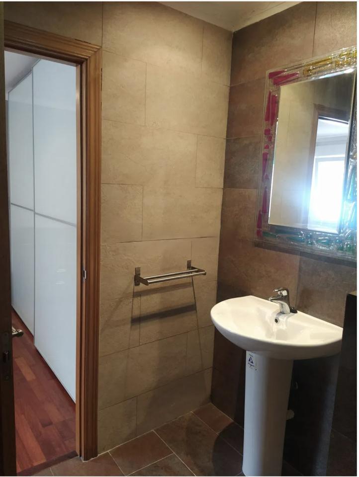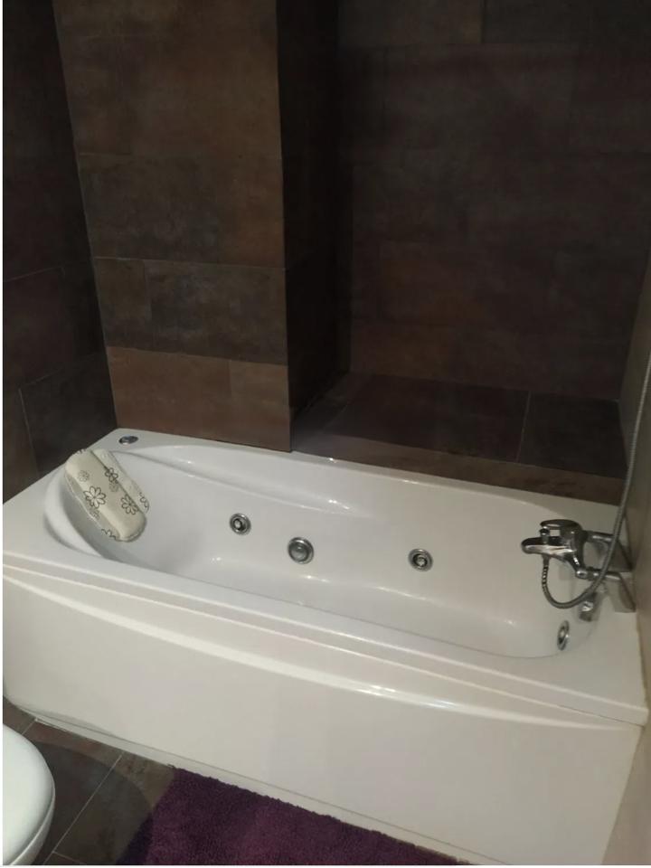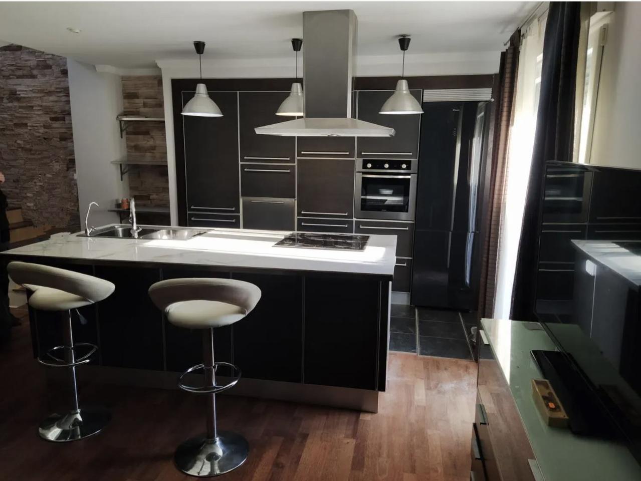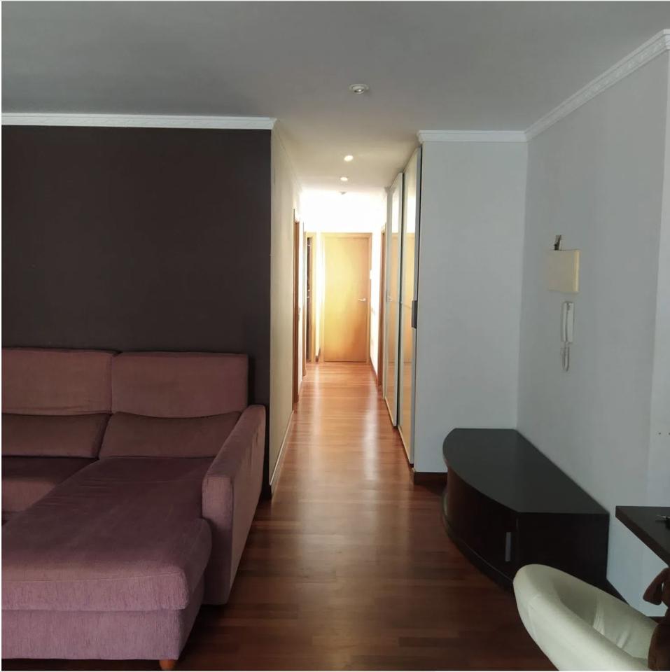 Inside, the apartment features an open-concept layout with an American-style kitchen and central island that flows seamlessly into the bright and spacious living room. The home includes three bedrooms and two bathrooms, one of which is en suite and equipped with a Jacuzzi for added luxury. Additional conveniences include a separate laundry room, built-in wardrobes, and a storage room.