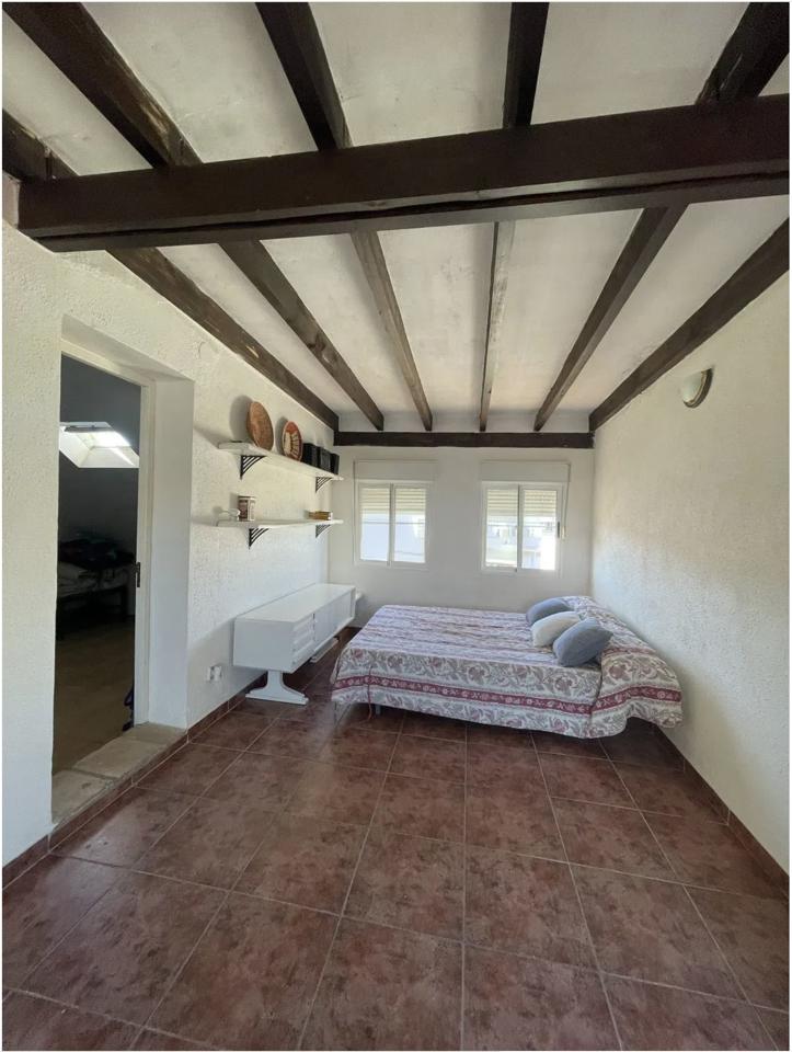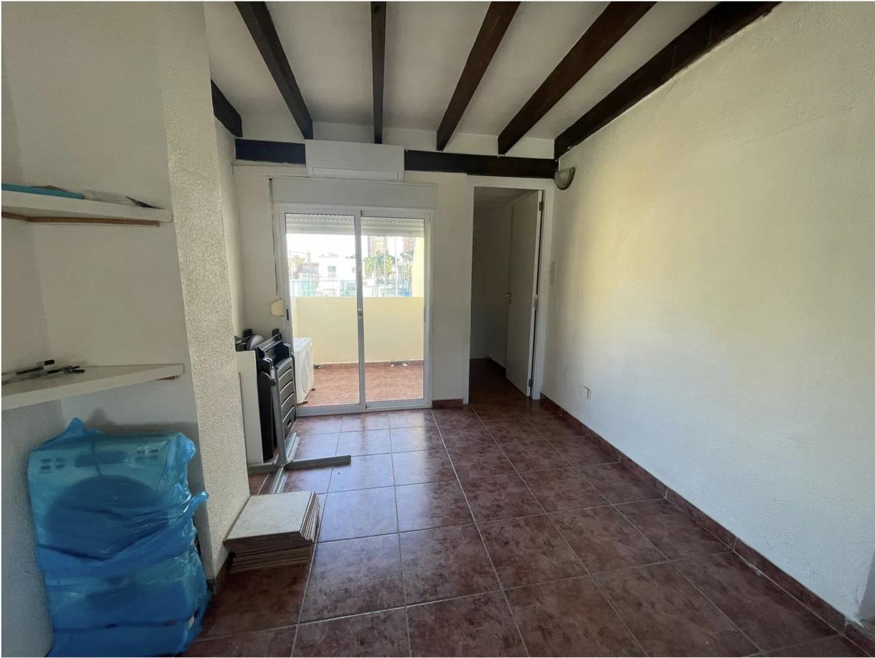 Townhouse in the Tavernes Playa development, with two terraces and a balcony, three bedrooms, and two bathrooms, one with a shower and the other with a bathtub. The loft-style kitchen and dining room have a fireplace. It also has two floors, each equipped with air conditioning. It is located near the beach and the development’s pool, which also has a children’s playground, a square, a soccer field, tennis courts, and a private paddle tennis court.
