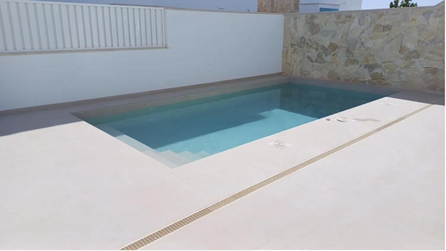 This semi-detached, single-story home, built in 2024, is in like-new condition and ready to move into. It offers 95 m² of built space (80 m² usable) on a 100 m² plot and features three bedrooms and two bathrooms. The home is designed for comfort year-round, with central air conditioning, central heating, and underfloor heating in the kitchen and bathrooms. An Ariston Nuos aerothermal boiler and two solar panels contribute to energy efficiency.