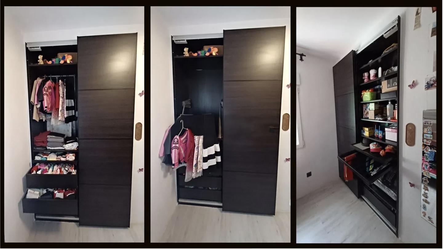 The apartment is located on the third floor of a recently renovated building with a modern elevator and video intercom system. It has been thoughtfully designed with custom-made furniture to maximize space and comfort. The bedrooms are equipped with large walk-in closets, and additional storage is available throughout the apartment. One of the rooms currently serves as an office but can easily be converted into a guest bedroom.