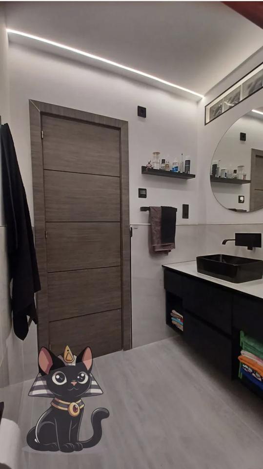 Smart features are integrated throughout the home, including four televisions, automated curtains, underfloor heating in the bathroom, security cameras, a digital peephole, and a smart vacuum cleaner. The entire apartment is state-of-the-art and designed with comfort and convenience in mind.