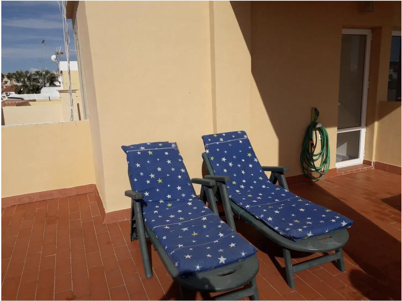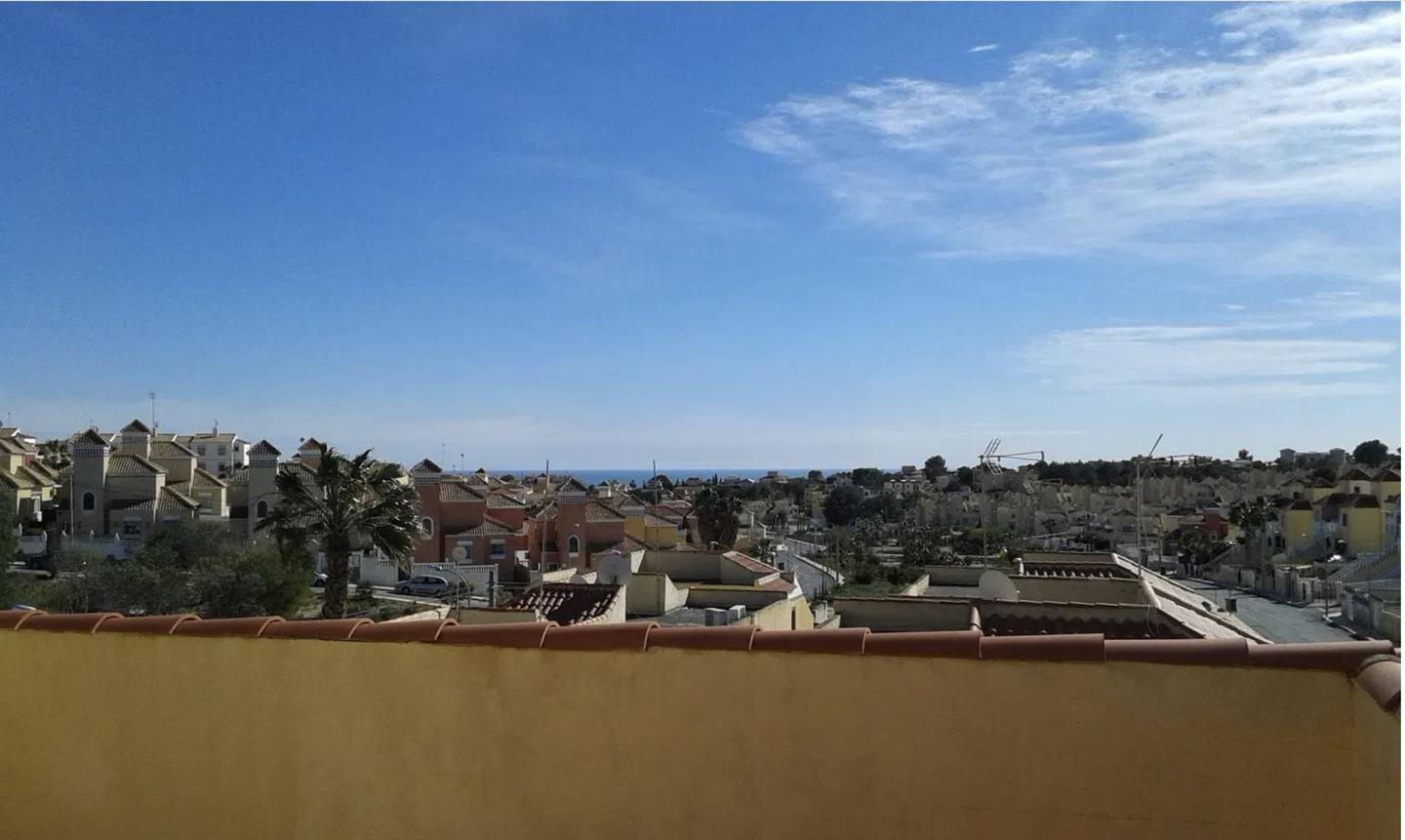 This apartment offers two separate bedrooms and an open-plan kitchen that flows into the living room, which opens out to both a balcony and a rooftop terrace with beautiful sea views. The property is equipped with independent air conditioning and features new windows throughout. It is situated on a quiet, peaceful street with no troublesome neighbors, providing a serene living environment. Residents also enjoy exclusive access to a communal pool and surrounding green areas.