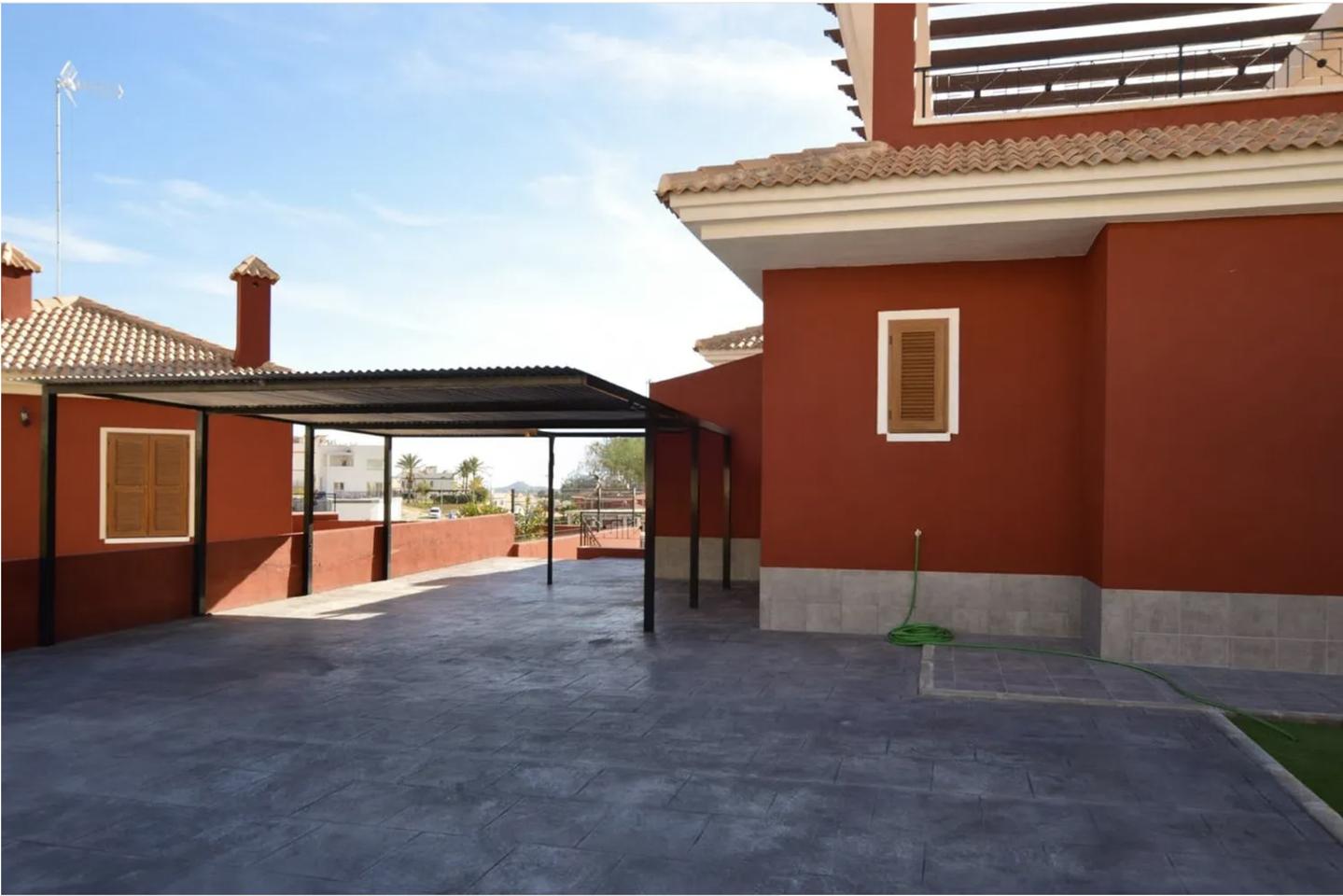 The villa also boasts a 25-square-meter solarium with a solar water heater, a garden with fruit trees, and a private 100-square-meter parking area. South-facing, the home enjoys beautiful sea and mountain views and is equipped with air conditioning, built-in wardrobes, and no community fees. The property is in excellent condition and offers ample space both indoors and out, ideal for family living or entertaining.