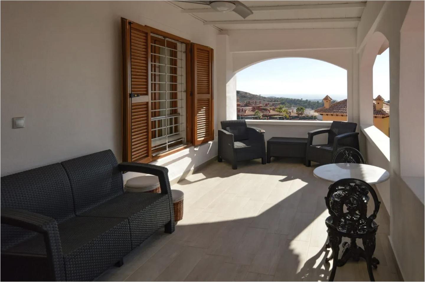 This large three-story villa, located in the Balcón de Finestrat development, offers a generous 340 square meters of built space, with 240 square meters distributed over two main floors and an additional 120-square-meter apartment with its own private entrance. The property is set on a 614-square-meter plot, with 250 square meters still available for constructing a swimming pool or tennis court.