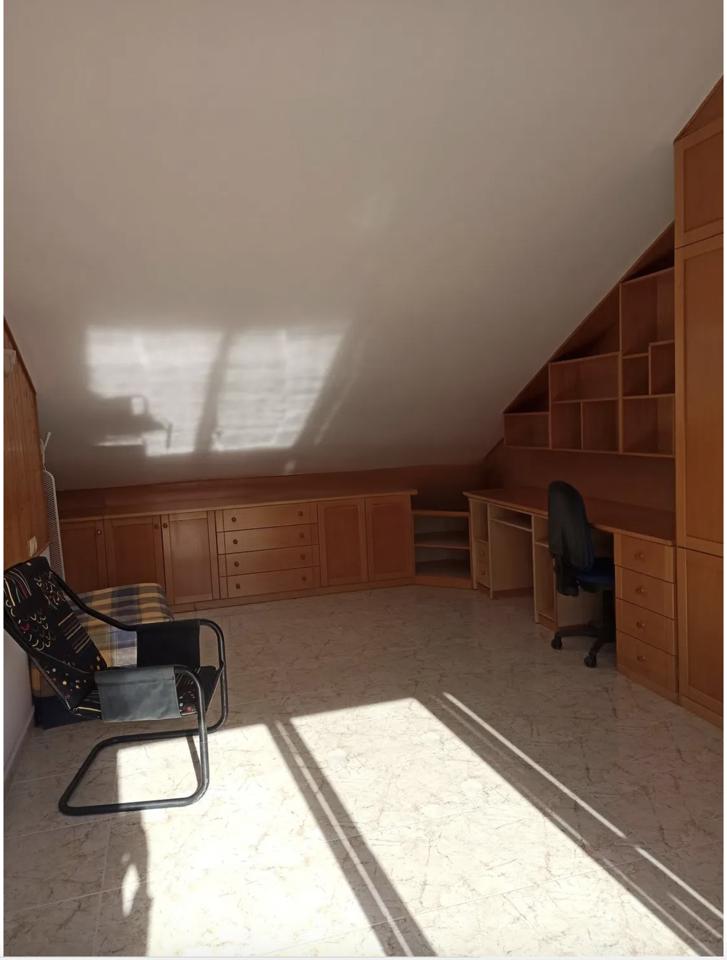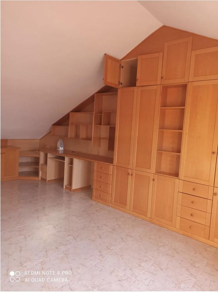 The property is a semi-detached house spread over three floors, offering a total built area of 140 m², with 102 m² of usable living space. It comprises four spacious bedrooms, one of which features a beautiful and roomy attic, as well as two full bathrooms and a guest toilet. The home also includes a separate kitchen and a generously sized living-dining room.