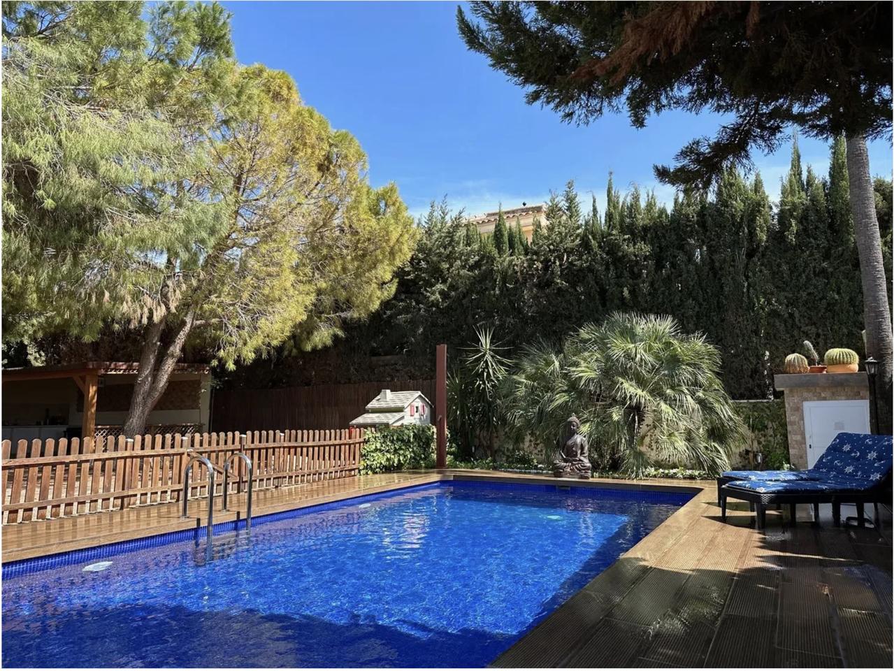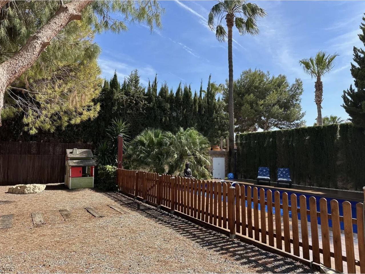 This incredible chalet with luxurious features is located in Ciudad Quesada. The detached house is spread over two floors and offers a generous 330 square meters of built area, with 240 square meters of usable living space. It comprises five spacious rooms and three bathrooms, providing ample space for comfortable living. Situated on a 900 square meter plot, the property includes a terrace and balcony, perfect for enjoying the outdoors. A parking space is included in the price. The house is second-hand but in good condition, featuring built-in wardrobes, a storage room, and south-facing orientation for plenty of natural light. It is equipped with individual heating and air-conditioning, ensuring comfort throughout the year. Additionally, the property boasts a private pool and a beautifully maintained garden.