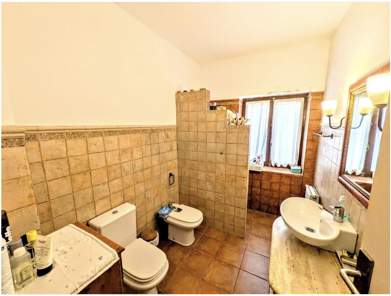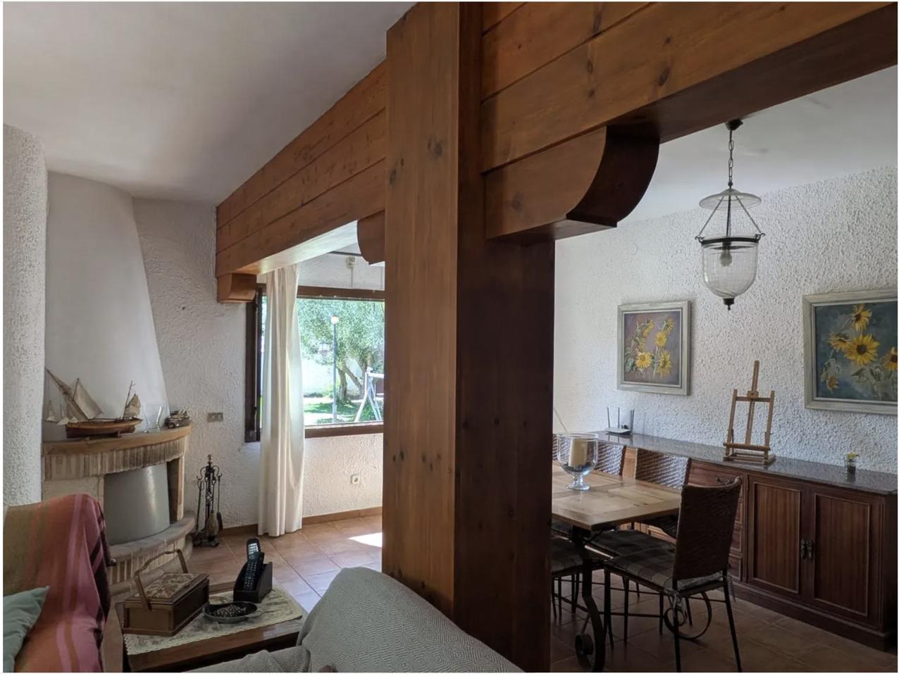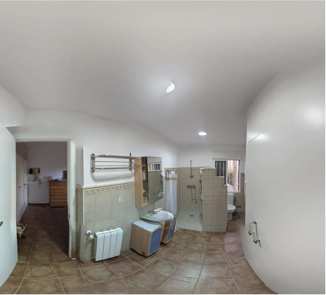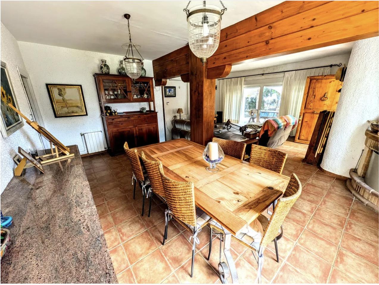 The main house is distributed primarily on the ground floor and includes five bedrooms—four doubles with built-in wardrobes and one single. The master bedroom has its own ensuite bathroom. There are a total of three bathrooms, including one with direct access from the interior patio, which features a sliding modular roof and houses utility equipment and a large pantry. The spacious living-dining room includes a fireplace, large windows, and direct street access, while the kitchen is designed with an adjacent dining area. Two porches complete the ground level: one serves as a versatile winter greenhouse that opens fully for summer use. The covered garage includes parking for one car and ample storage space.