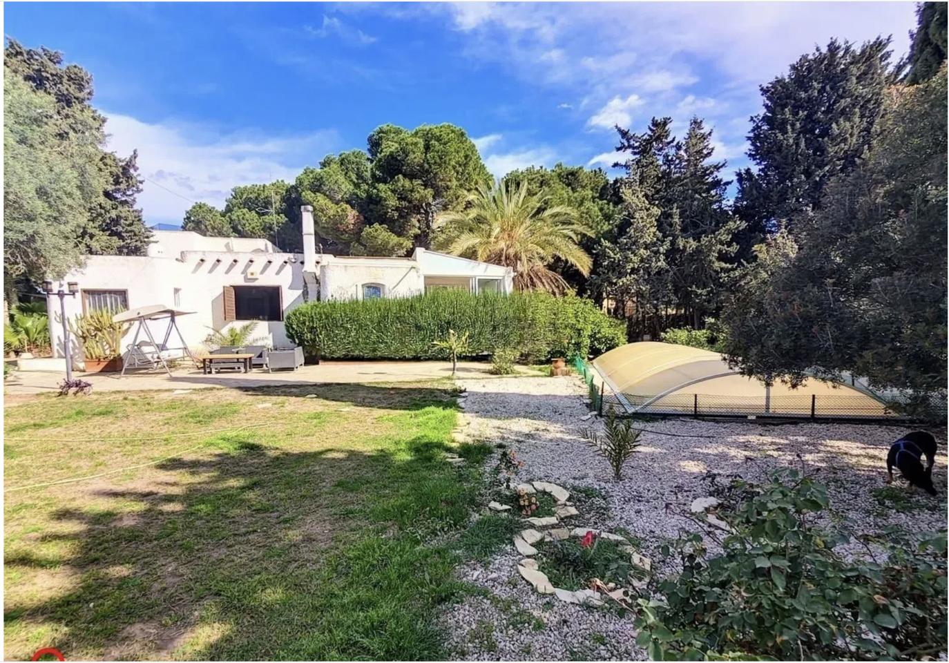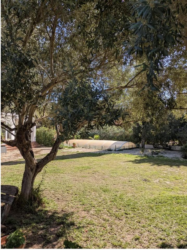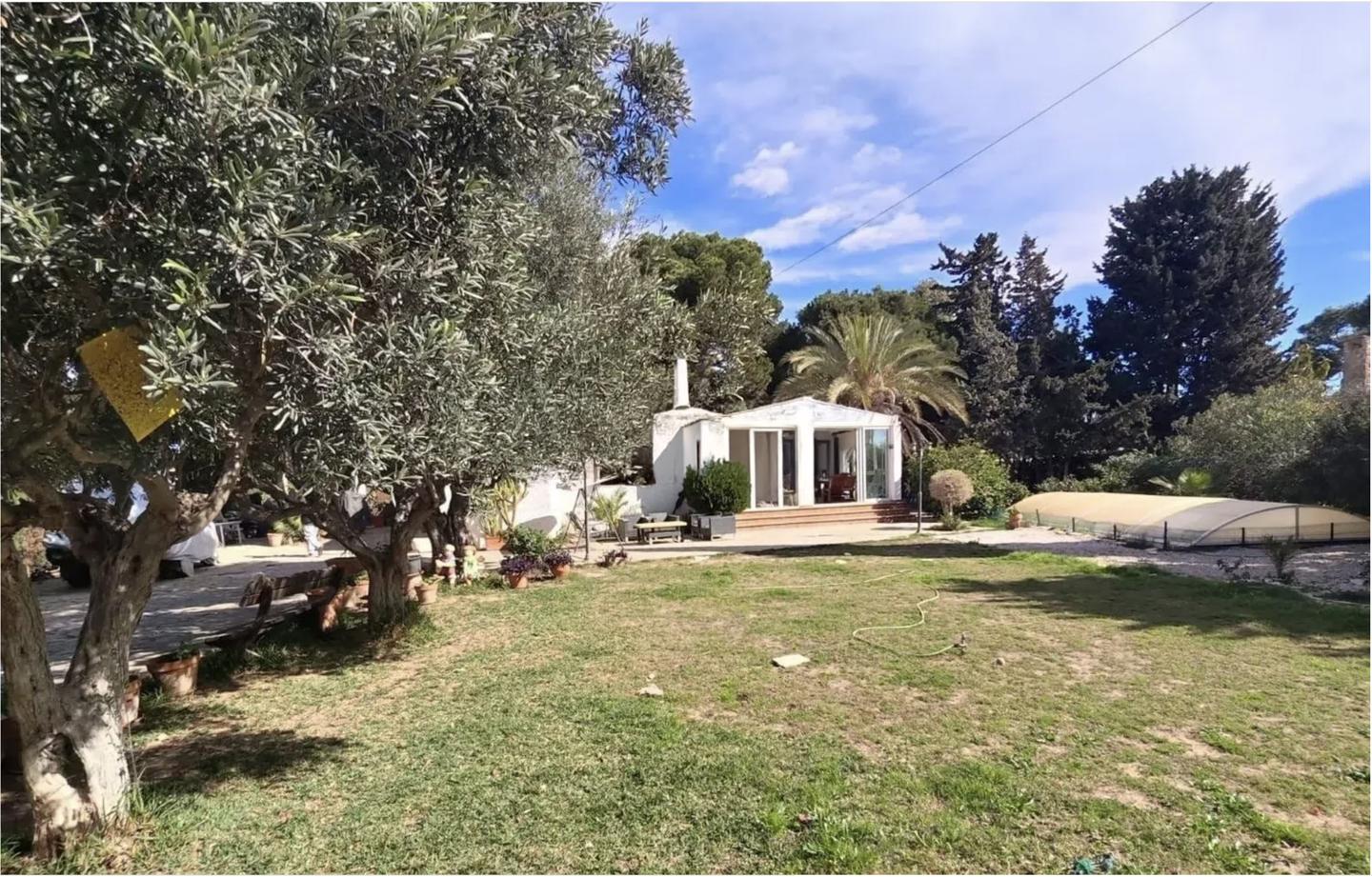 The plot features a private, automatic dual entrance—one for pedestrians and one for vehicles—with parking capacity for up to four cars. A manicured front lawn is home to three mature olive trees and various garden plants, as well as the property’s indoor swimming pool. To the rear and side, you’ll find shaded areas with mature pine and Arizona trees, providing a natural and tranquil setting.