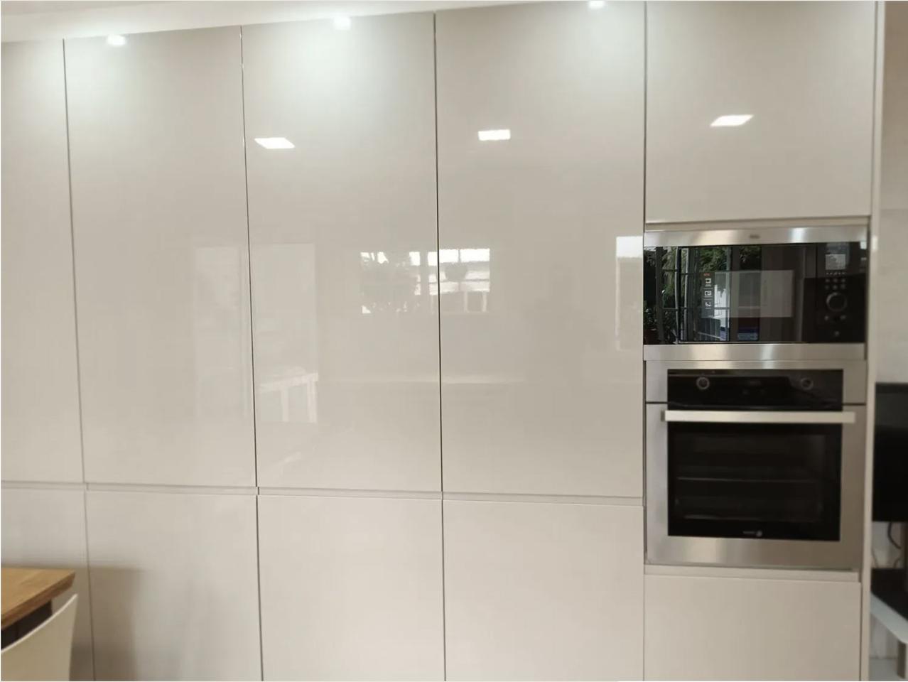 The **ground floor** (151 m²) is elevated on a moisture-resistant horizontal slab and houses the home’s main living areas: an entrance hall, an expansive 50 m² living room with a sleek modern staircase, a stylish Porcelanosa kitchen with integrated appliances, an adaptable patio with non-slip flooring, a guest toilet, and a garage equipped with a shower—perfect for summer beach days. This level also includes a dedicated office space, adding functionality for remote work or study.