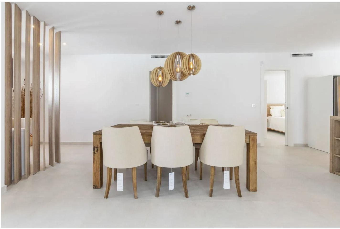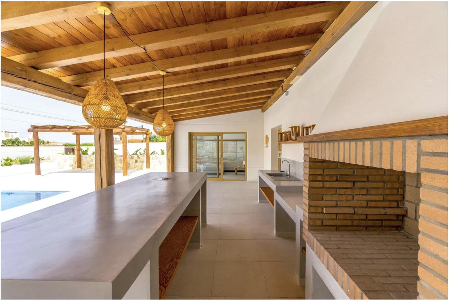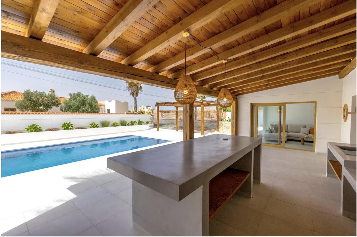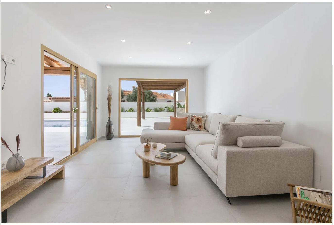Inside, the villa features four spacious bedrooms and three elegant bathrooms, all designed with comfort and style in mind. The interior is warm and inviting, with brand-new furnishings included, and showcases a tasteful mix of rustic accents and contemporary finishes. Built-in wardrobes provide ample storage, while the overall layout ensures both functionality and flow.