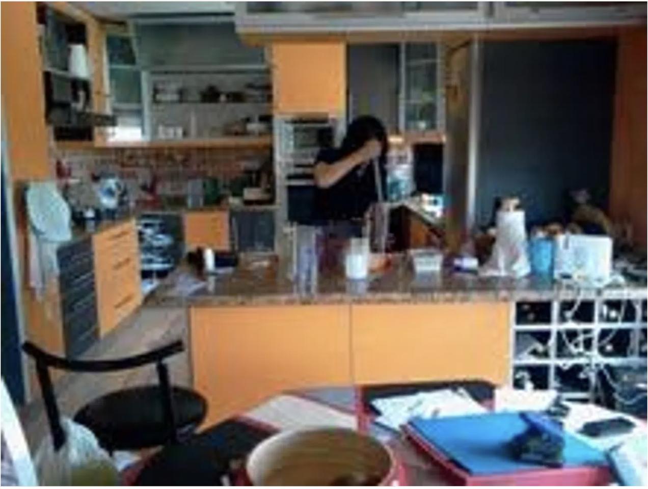 The ground floor offers even more living space, with another fully equipped kitchen featuring five gas burners, an oven, a barbecue with an iron oven, a bowl sink, and a fruit washer. This floor includes three additional bedrooms, two living rooms, a pantry integrated into the kitchen wall, one toilet, and a bathroom with a hydro-massage shower cabin and sauna. It also includes two more built-in wardrobes, three air conditioning units, and another glazed terrace.