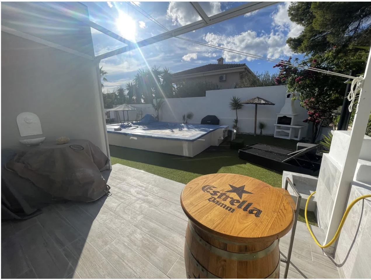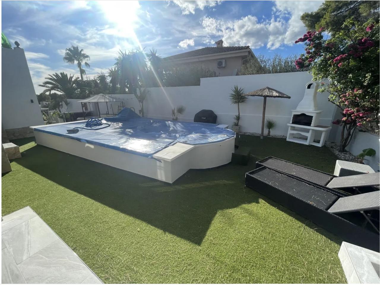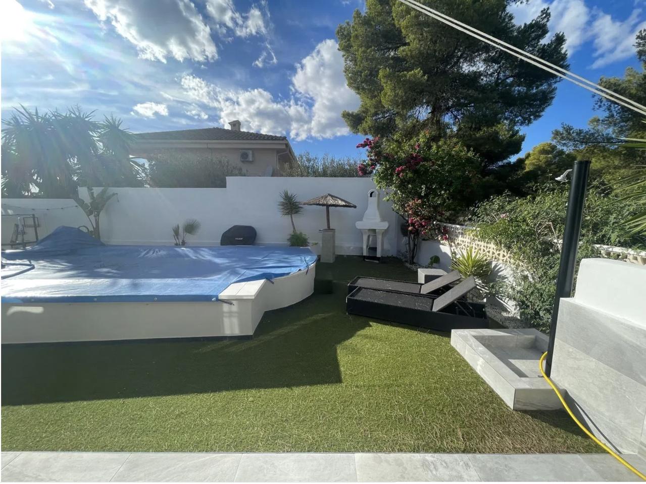 This chalet, located in the Bello Horizonte 2 area, sits on a spacious 750 m² plot and features a beautifully maintained garden, a private swimming pool, and a charming covered terrace ideal for relaxing outdoors.