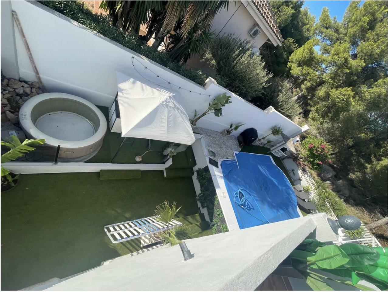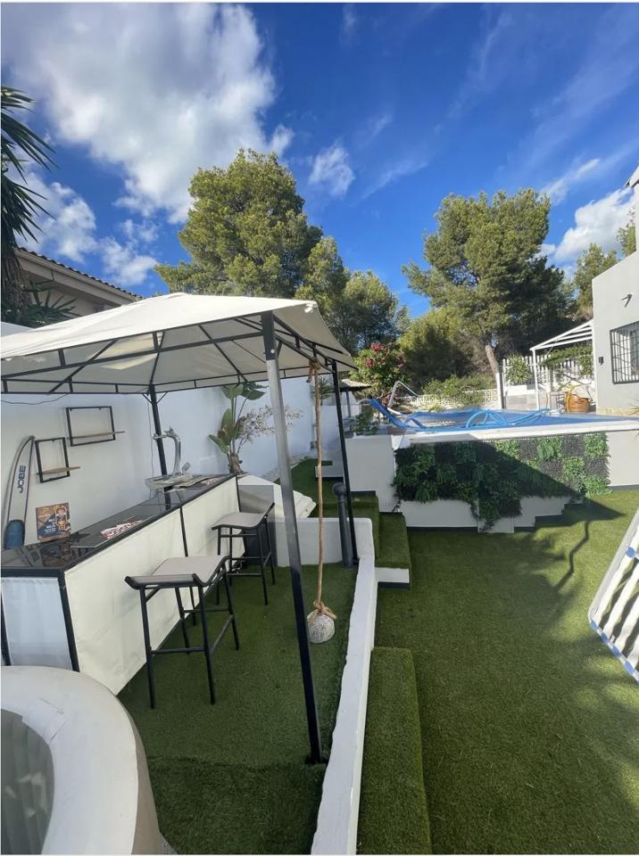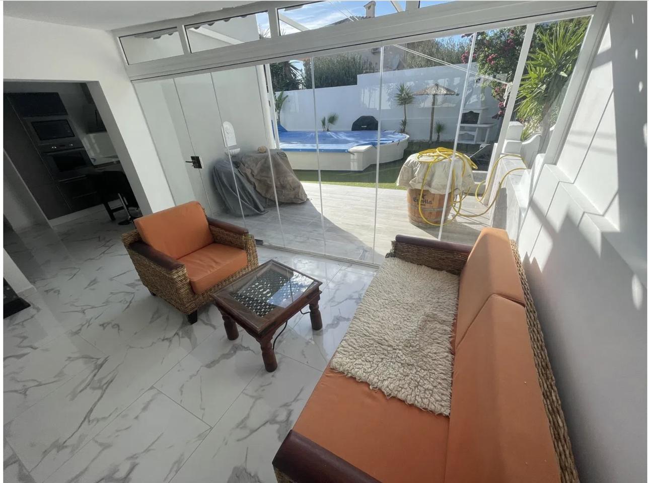 This chalet, located in the Bello Horizonte 2 area, sits on a spacious 750 m² plot and features a beautifully maintained garden, a private swimming pool, and a charming covered terrace ideal for relaxing outdoors.