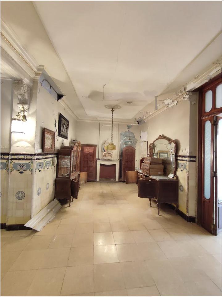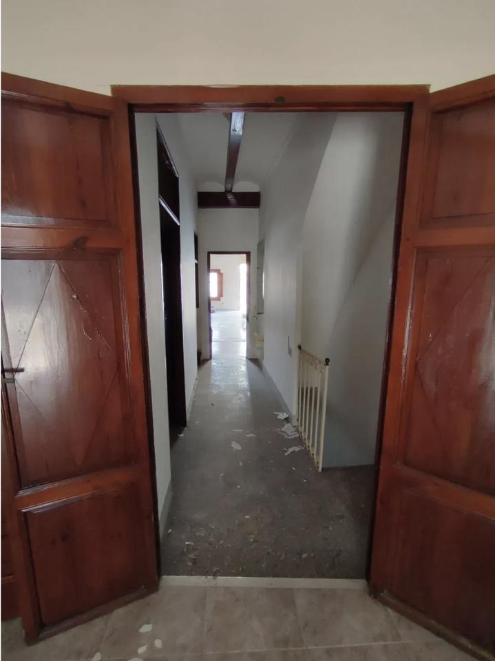 This spacious townhouse is arranged over three floors and offers a total built area of 500 square metres. It comprises eleven rooms and three bathrooms, along with both a terrace and a balcony providing outdoor space. The property features a chimney, built-in wardrobes, and a storage room for added convenience. A parking space is included in the price. Although second-hand, the house requires renovation, presenting an excellent opportunity to create a bespoke home.