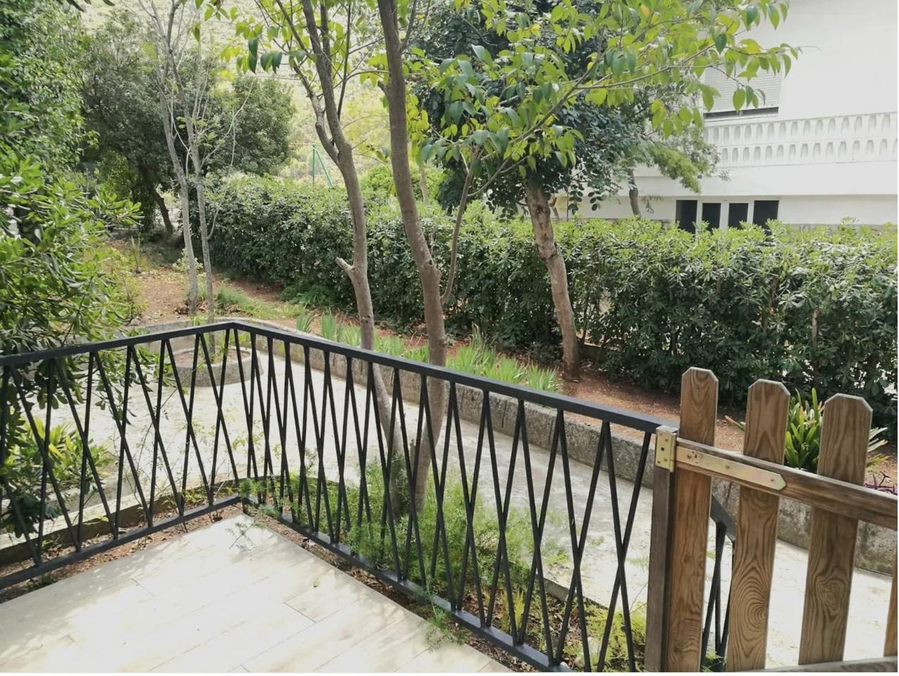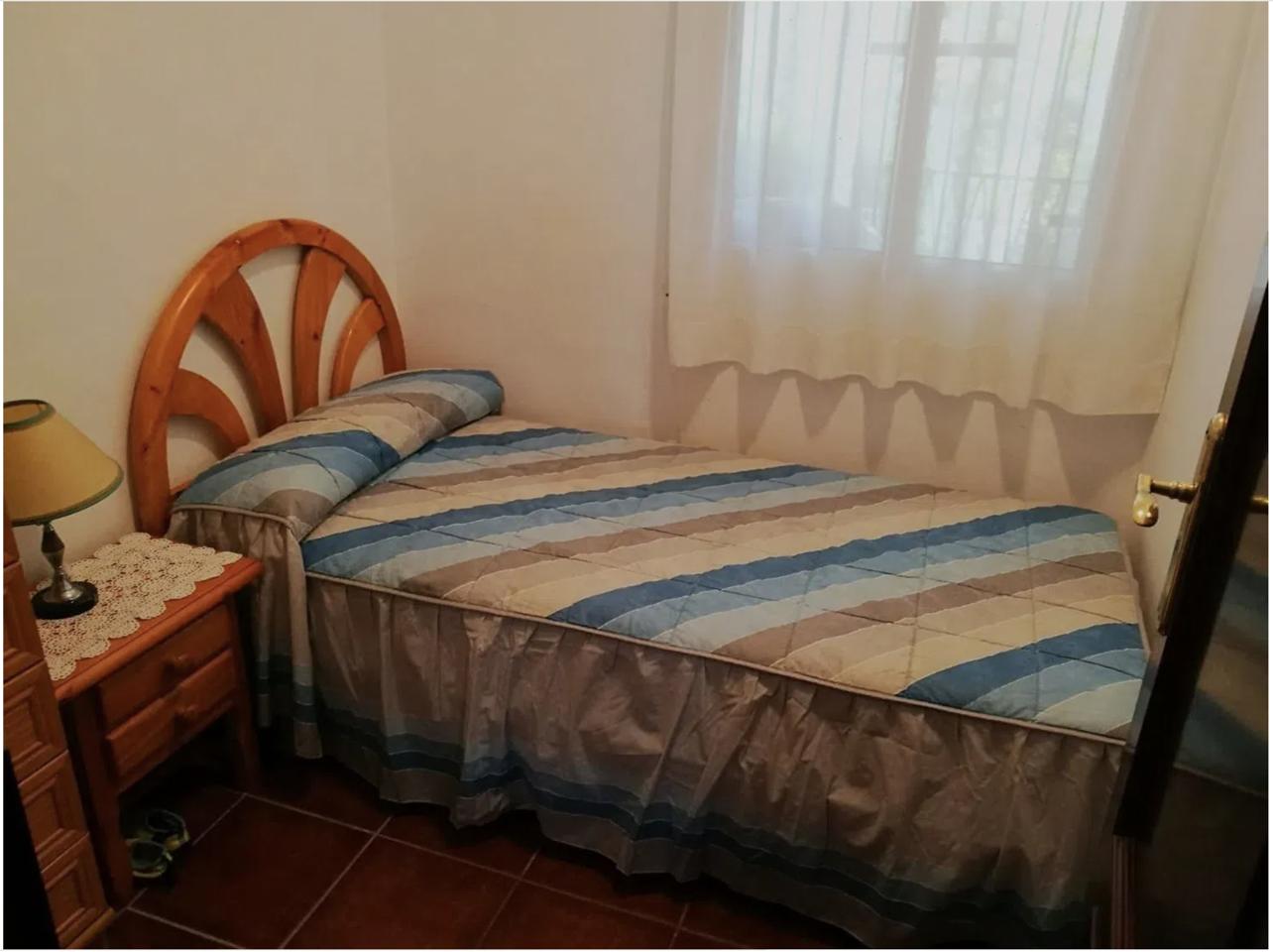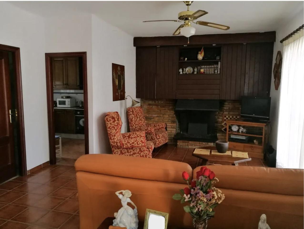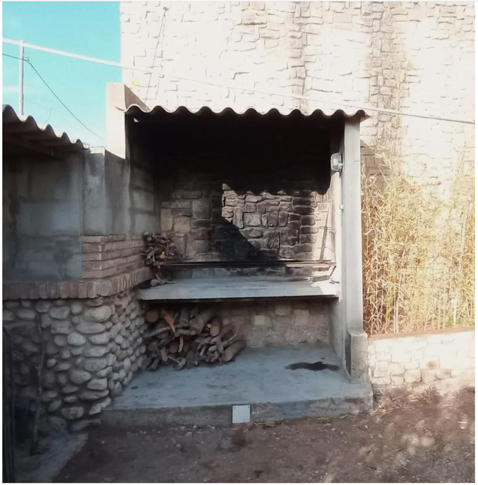 With a total built area of 250 m² (125 m² usable), the villa is arranged over two floors. The ground floor features a front terrace and a covered rear porch, ideal for outdoor dining or relaxing in the shade. Inside, there is a welcoming living-dining room with a fireplace, a separate fully fitted kitchen, one double bedroom, one single bedroom, and a full bathroom.