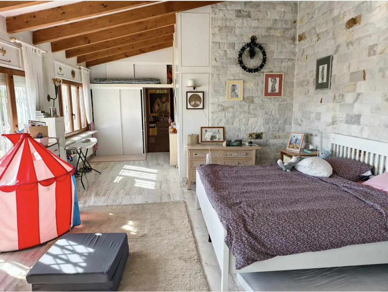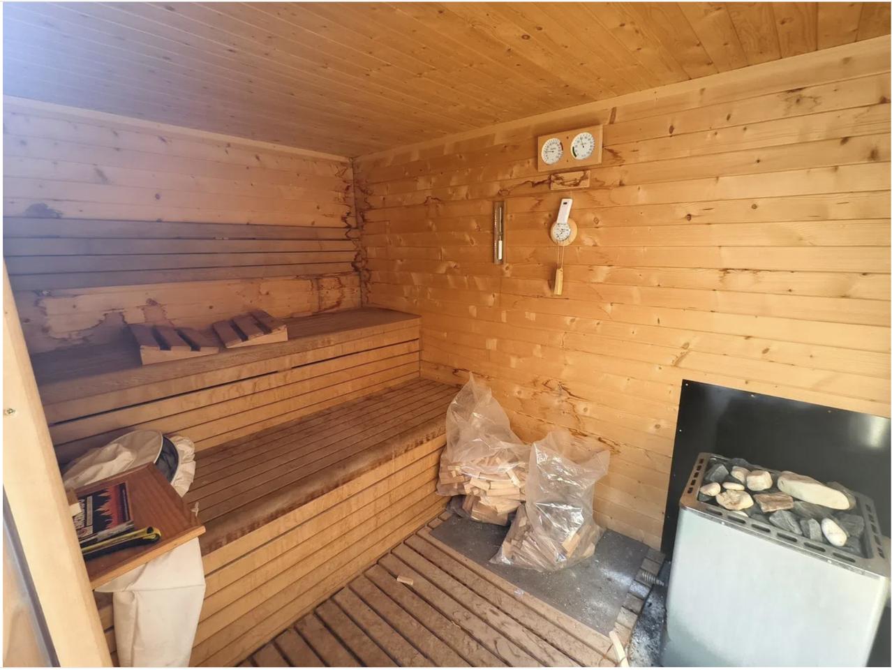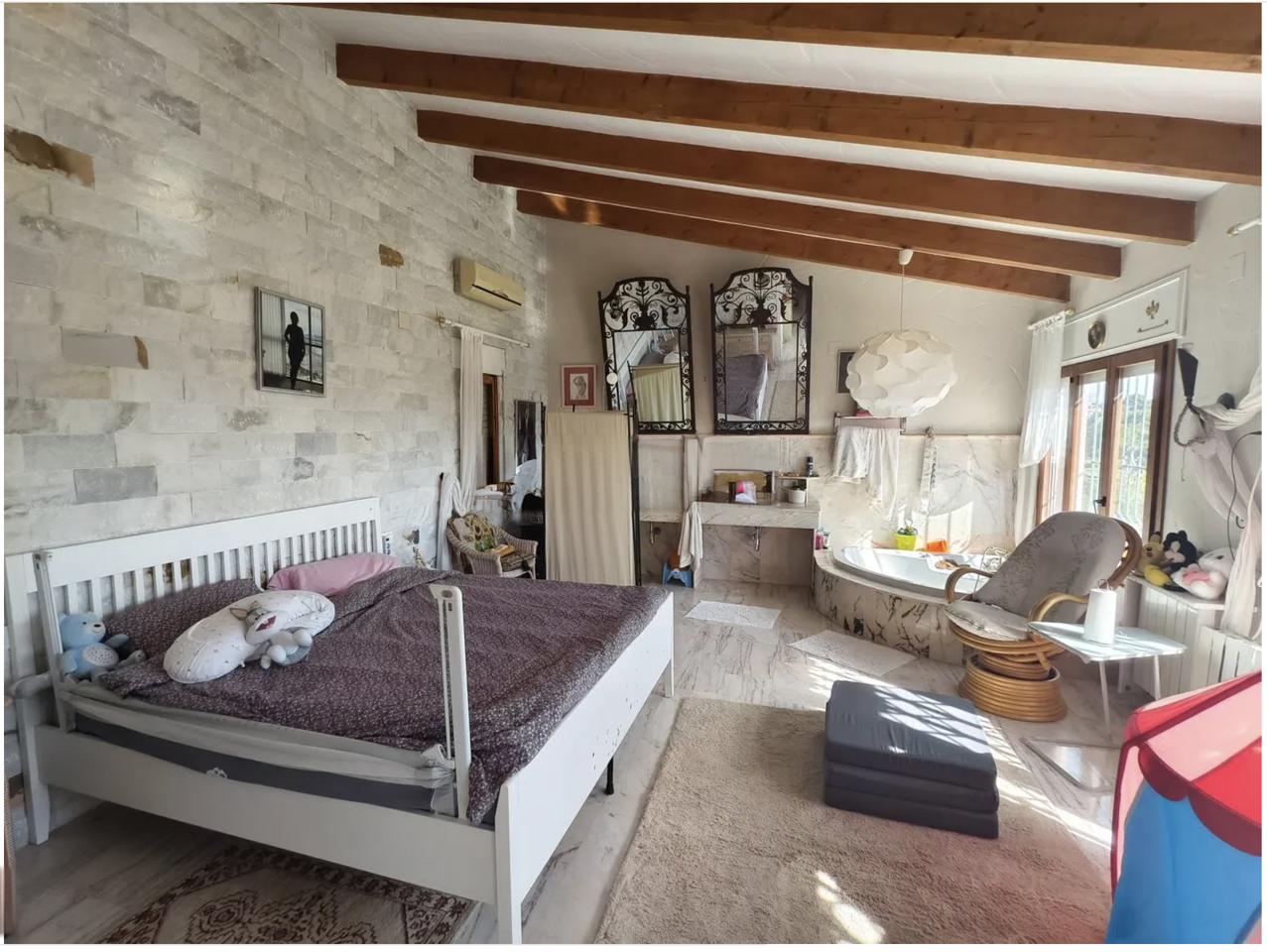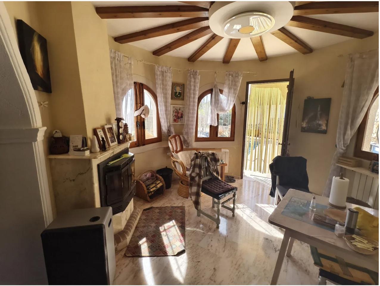 The villa also boasts a traditional wood-fired sauna, a garden filled with native plants and fruit trees, a laundry room, and parking for several vehicles. Cozy fireplaces add warmth during the colder months, while modern comforts are ensured with a 12 kW solar energy system with batteries, offering full electrical independence. Additionally, a private well provides autonomy from the public water supply. This home effortlessly blends timeless Mediterranean charm with modern efficiency and comfort.