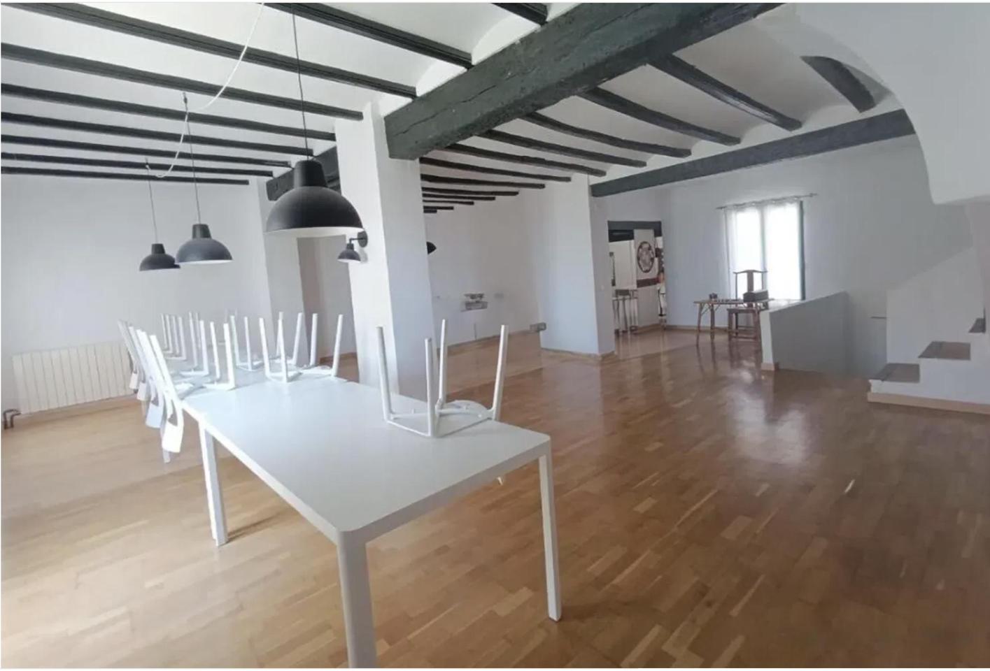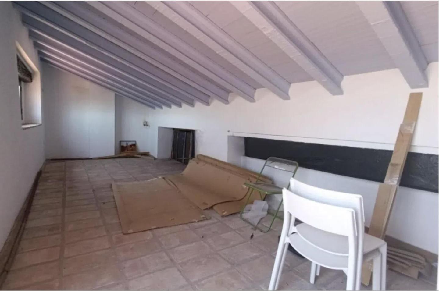 On the second floor, a bright, open-plan space with parquet flooring offers multiple possibilities for customisation, with room to create up to three additional bedrooms. This level also includes a kitchen with courtyard views and a charming workshop or studio that retains its original wood-burning oven, adding a special touch of authenticity.