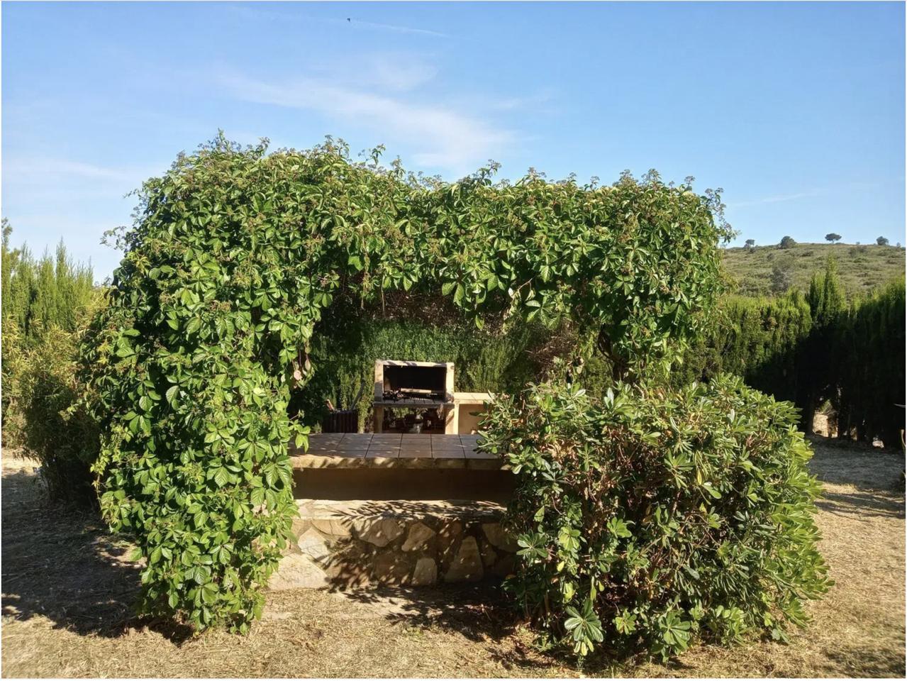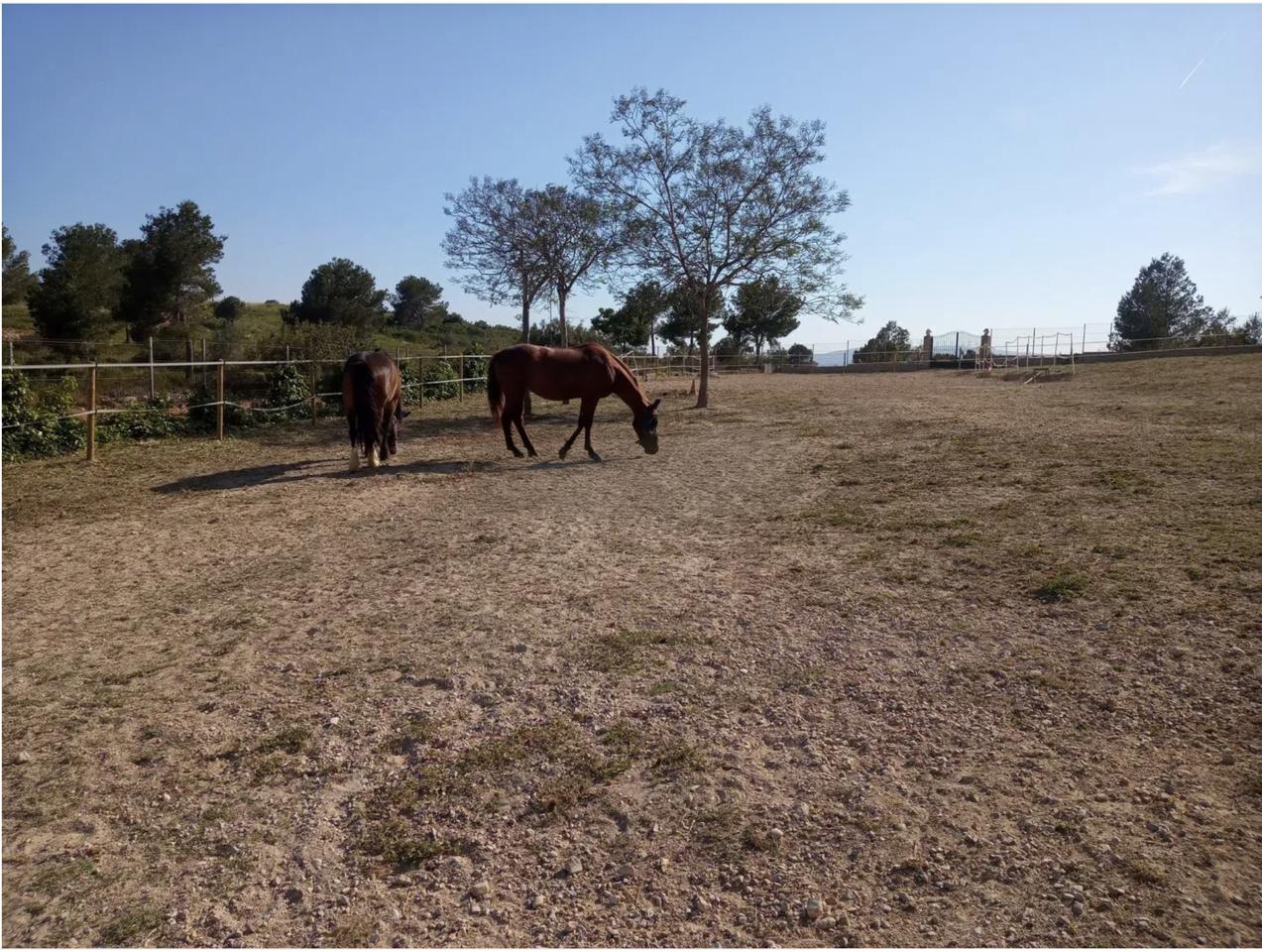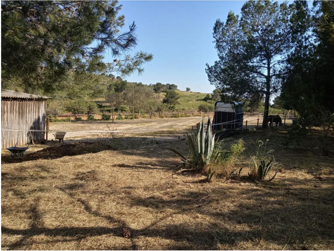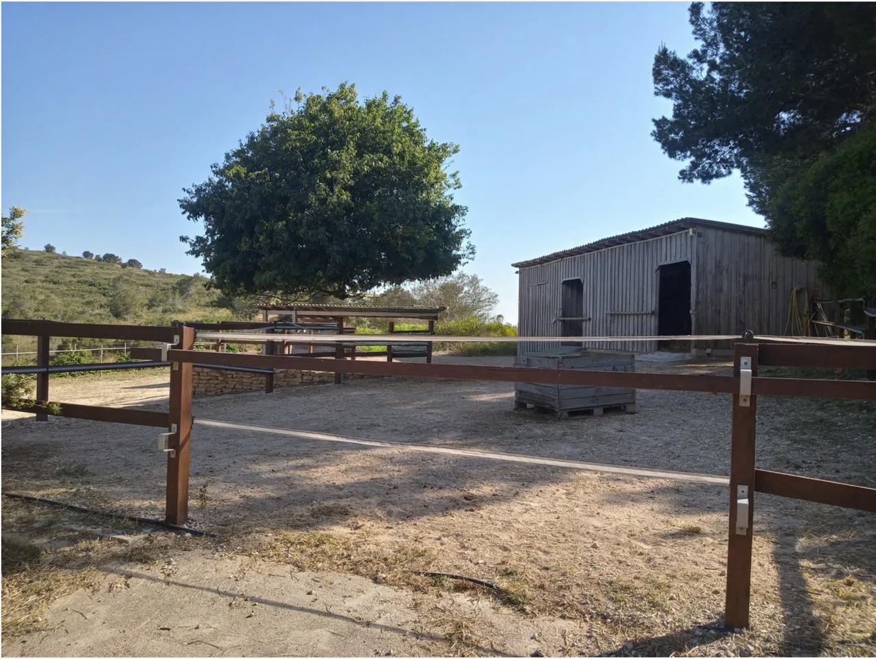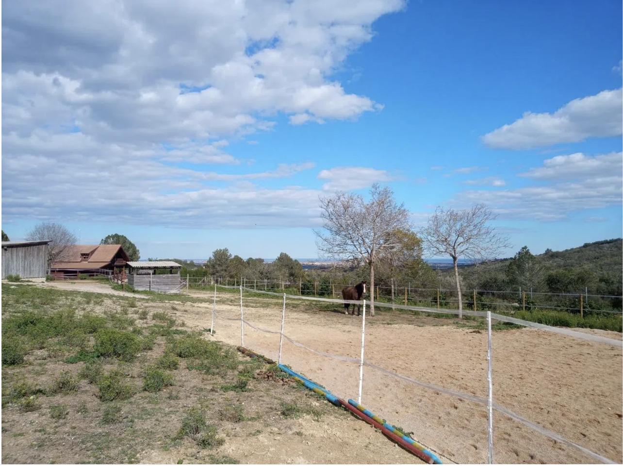 The house is fully equipped with electricity, running water, internet, television, an alarm system, a smoke detector, a water softener, a washer-dryer, dishwasher, portable air conditioner, and a paraffin heater. Furniture and garden tools, including a lawnmower, are included and in excellent condition. The property has two wide entrances, one with an electric gate and lighting, and all animal areas, including corrals, chicken enclosures, and dog kennels, are fully functional and well-maintained.