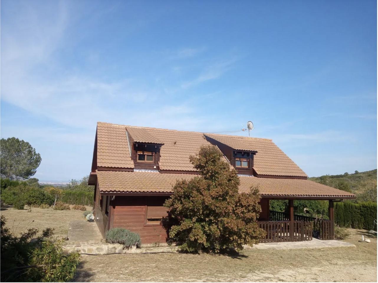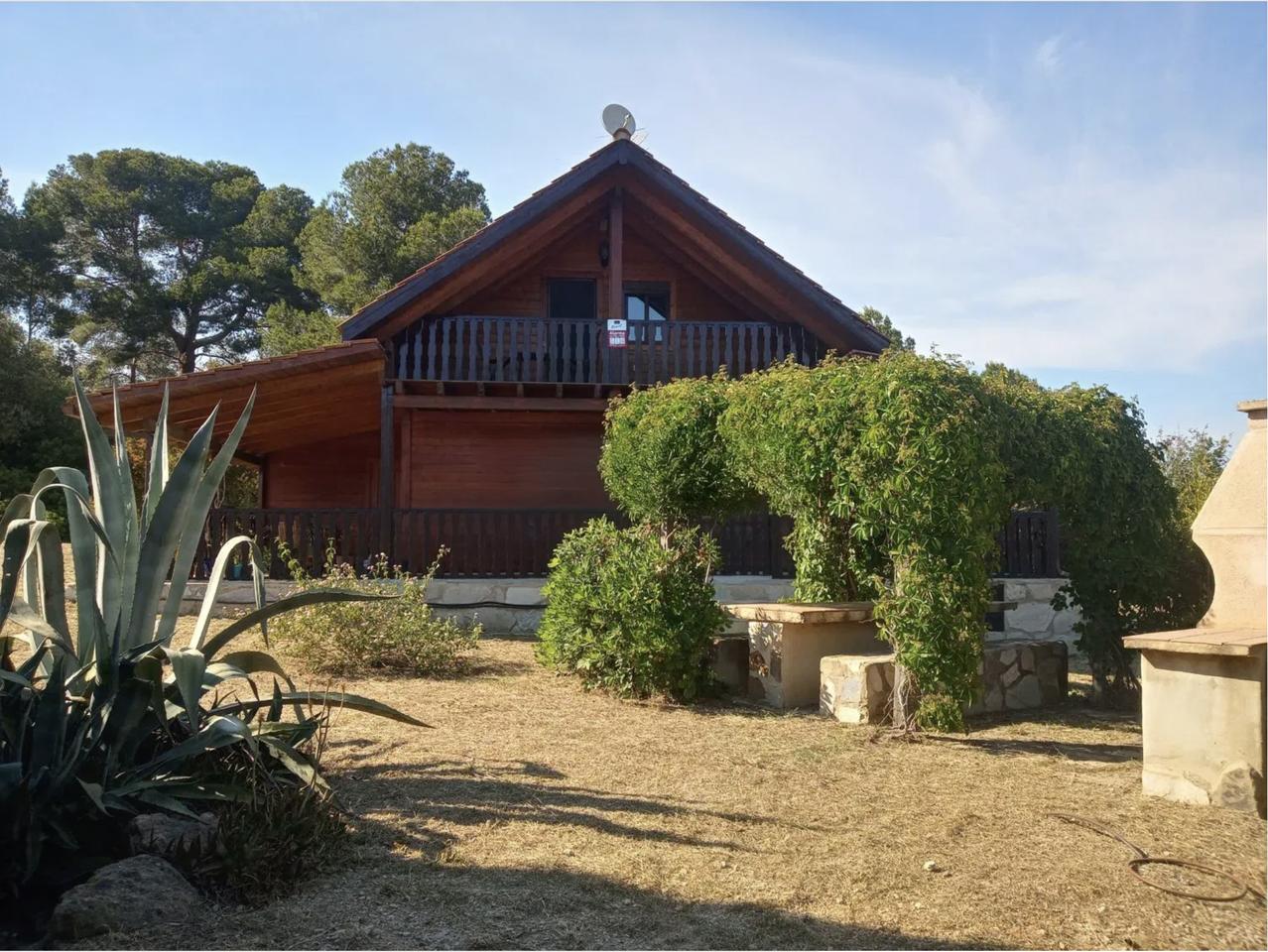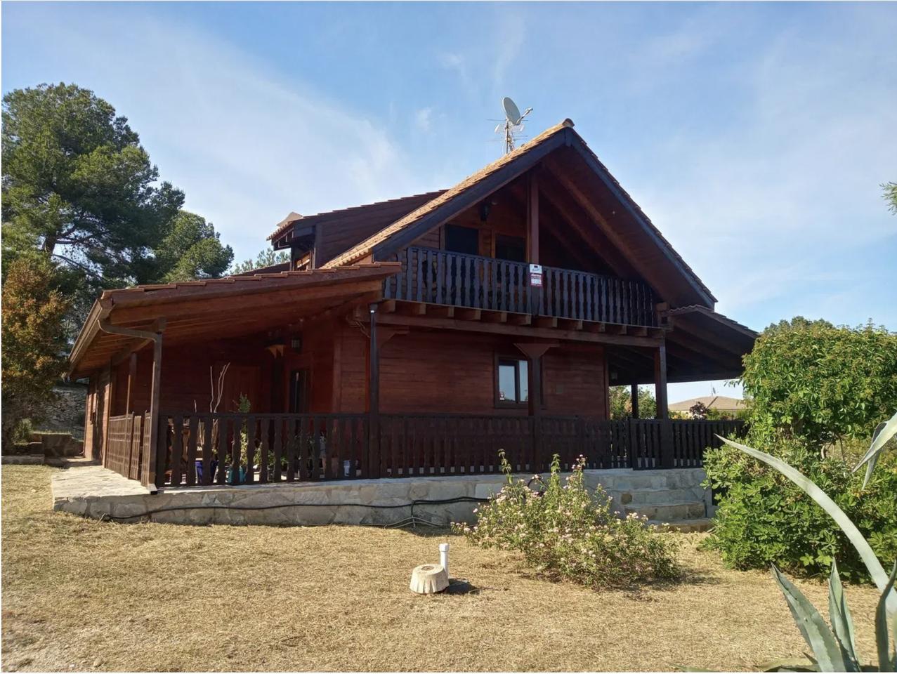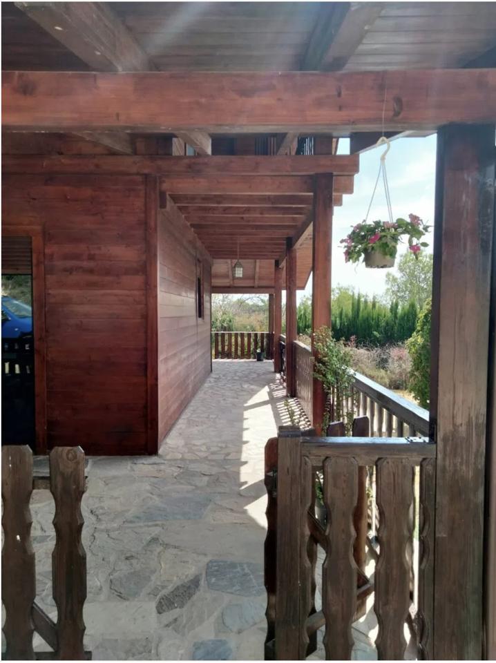 This charming two-storey wooden country house, fully renovated and in perfect condition, offers 200 m² of built space with 130 m² of usable living area, set on a fully fenced 6,500 m² plot. Ideal for a couple or a small family, it features five bedrooms, two bathrooms, a spacious living room with a balcony, a large kitchen-dining room, and a generous terrace. The property also includes an idyllic pergola with a barbecue, stables for three horses with a corral, and a 14 x 28 meter riding arena, making it a true equestrian haven.