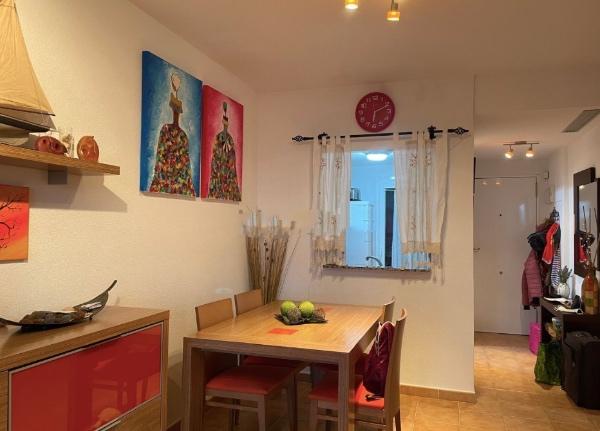 Beautiful and sunny apartment. With views of the Sierra de Irta and the coast. Very quiet urbanization even in high season. Distribution, hall, kitchen with utility room, living room, 2 double bedrooms, 2 bathrooms with shower, large terrace. First floor height. With views of the Sierra de Irta, the pool and the sea. Very bright in all seasons. Sold furnished. Better to see.