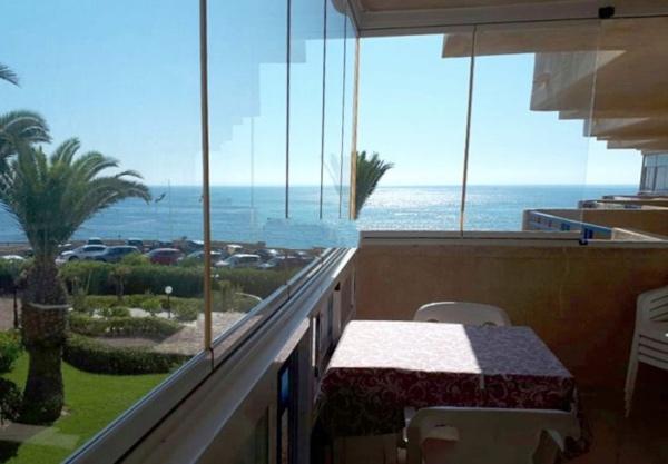 Beachfront! Urbanization Mil Palmeras next to Campoamor. Two bedroom apartment on 2nd floor in fabulous urbanization with swimming pool, green areas and playground. Housing in perfect condition. Accessible portal and elevator. Exceptional views.