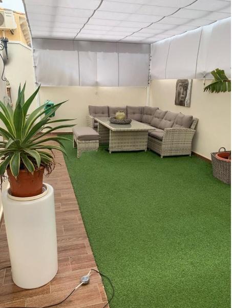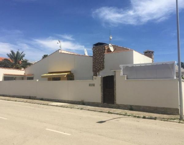 Semi-detached independent villa in the Dehesa de Campoamor area, Orihuela Costa. 3 bedrooms 2 bathrooms renovated to new, very spacious living room and kitchen, wooden floor, dressing room. Very large terrace with artificial grass. Urbanization with swimming pool, paddle and tennis courts. Very low community cost (€27 per month. ) The house is located 5 minutes walk from the beach. Very quiet area. Primary and secondary schools 7 minutes away. The house can be viewed without obligation.