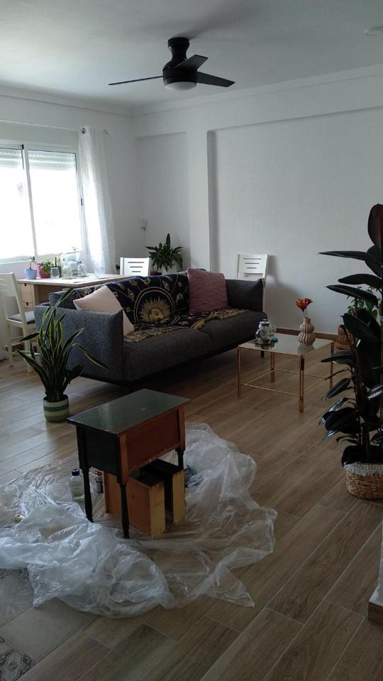 The apartment has 3 bedrooms, a bathroom, kitchen and living room. The windows overlook a large interior courtyard facing west, so despite being interior, it is very bright and enjoys natural light throughout the day.