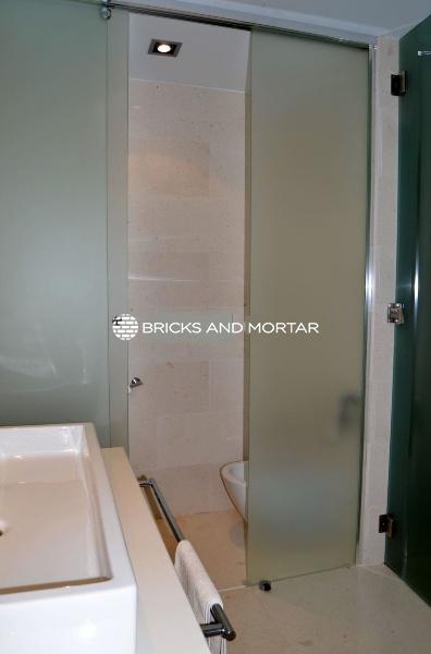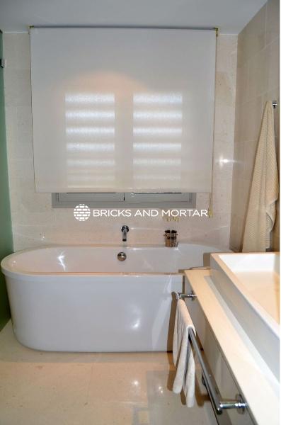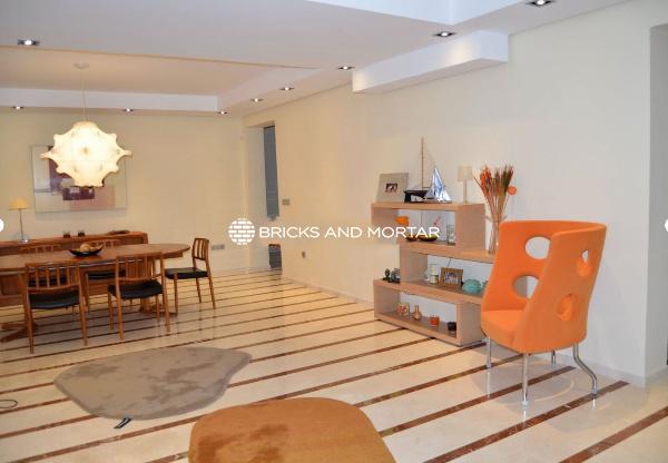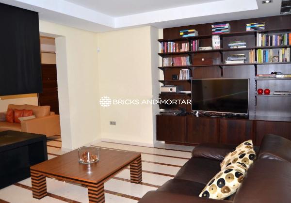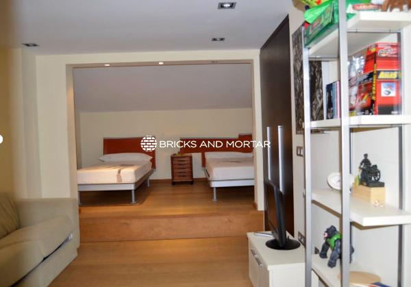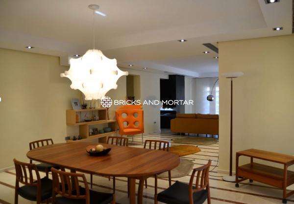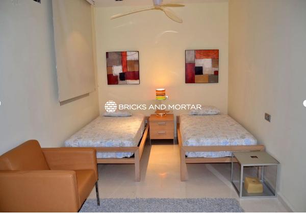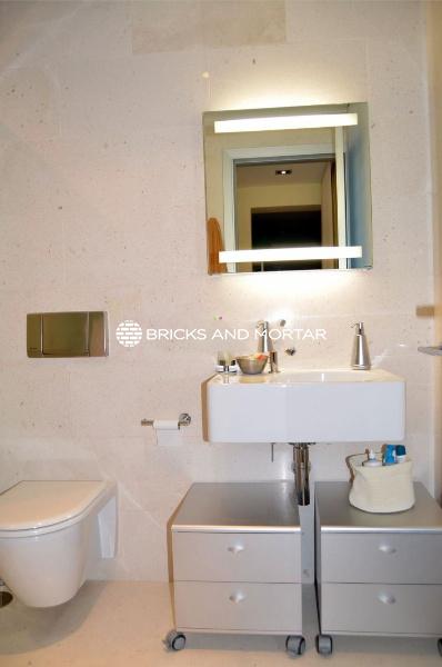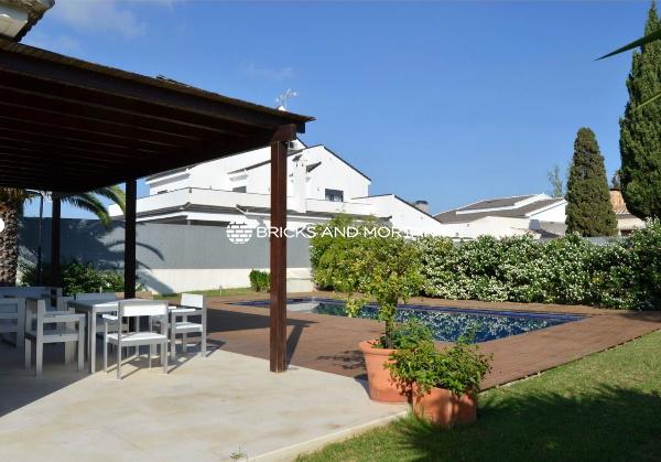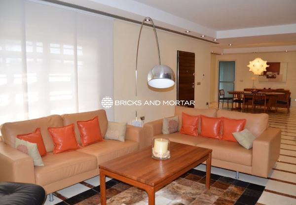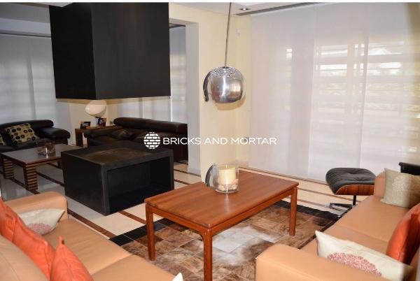 The house boasts a generously sized living-dining room with two distinct areas, providing ample space for hosting guests. The dining area seamlessly blends with the spacious living room. The modern kitchen is both bright and inviting, with sliding windows that connect it to the garden. In total, there are 4 exceptionally roomy bedrooms, each featuring areas for relaxation with sofas. You’ll also find 5 bathrooms within the property.