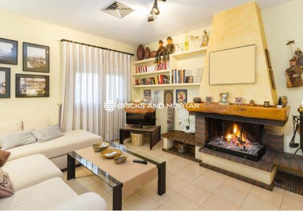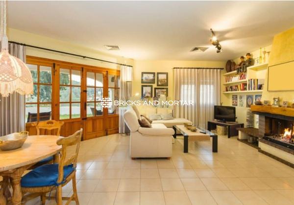 The lower floor provides an expansive living area with its own fireplace, an ideal space for gatherings with family and friends. Additionally, this level includes a generous 40-square-meter storage room and a space suitable for a wine cellar, along with a third bathroom. High-quality aluminum carpentry with safety glass, central heating, and electric thermos provide comfort and security.