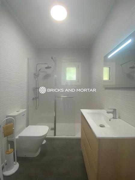 Inside the house, you’ll find a generously sized living room, complete with a cozy fireplace, and an independent kitchen thoughtfully equipped with brand-new pristine white appliances. There are two well-designed bedrooms, each featuring fitted wardrobes. The stylishly appointed full bathroom includes a convenient walk-in shower. The interior is adorned with elegant laminate flooring, white lacquered doors, and an armored entrance door (Dierre) for added security. White aluminum exterior carpentry is complemented by additional Majorcan shutters, and air conditioning ensures comfort. You’ll also enjoy a spacious terrace and an inviting porch, ideal for outdoor relaxation and enjoyment.