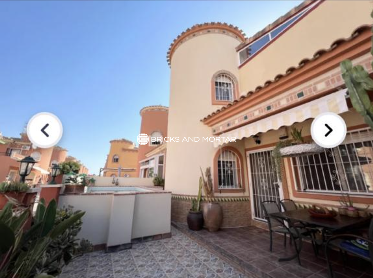This detached, furnished villa is ideally situated in a prime location, directly facing the sports center and just 1 kilometer away from La Zenia. With a total of three bedrooms, one of which includes an ensuite bathroom, a dressing room, and a private terrace, this villa offers a comfortable and spacious living experience.