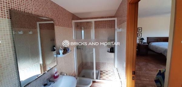 The first floor accommodates three double bedrooms, a shared bathroom, and an en-suite bathroom for added convenience. The exterior carpentry is crafted from white lacquered aluminum and features double glazing.