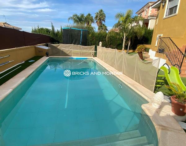 Detached house in a very quiet area with views. Very well maintained, with many details, ready to move into. Very comfortable house, with a consolidated garden with artificial grass and a garage for two vehicles with a games room, toilet, 3 storage rooms, laundry room/kitchen with direct access to the garden at the same height as the covered barbecue. Pool with 8x4m ladder.