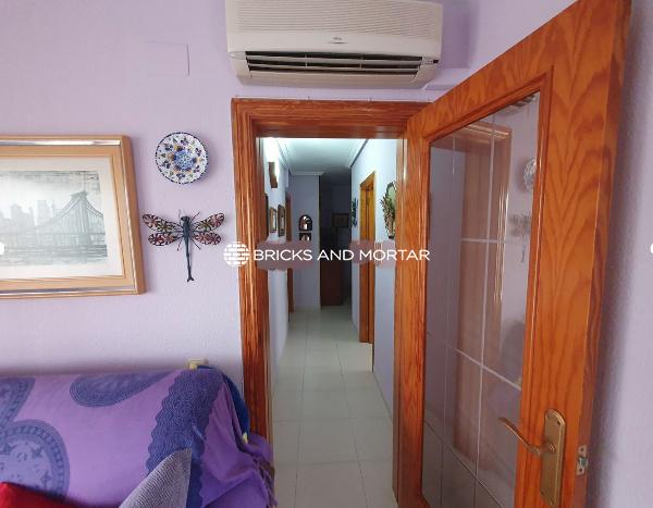 Fully equipped apartment for sale ready to move into. It consists of 2 bedrooms with fitted wardrobes, entrance, living room with fireplace and access to terrace, kitchen with large pantry and outdoor laundry room, and full bathroom. It has a hot-cold pump throughout the apartment, mosquito nets, etc.