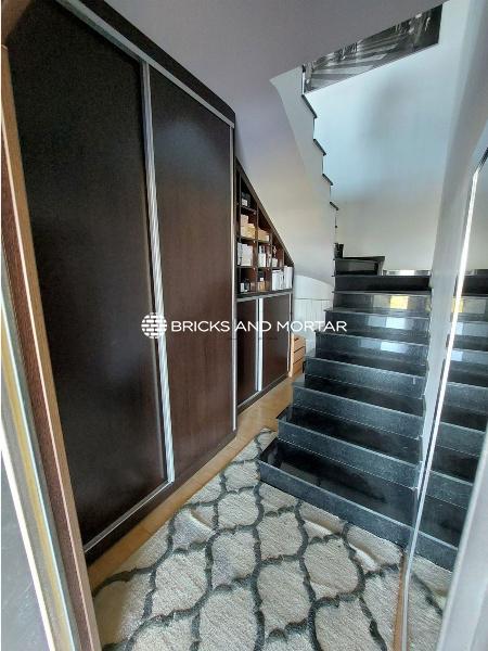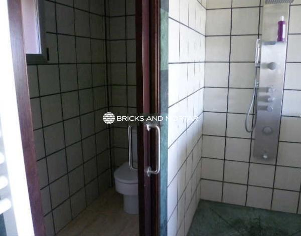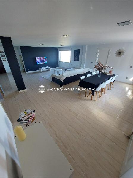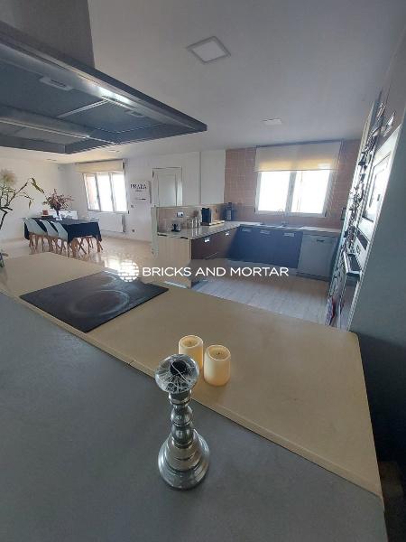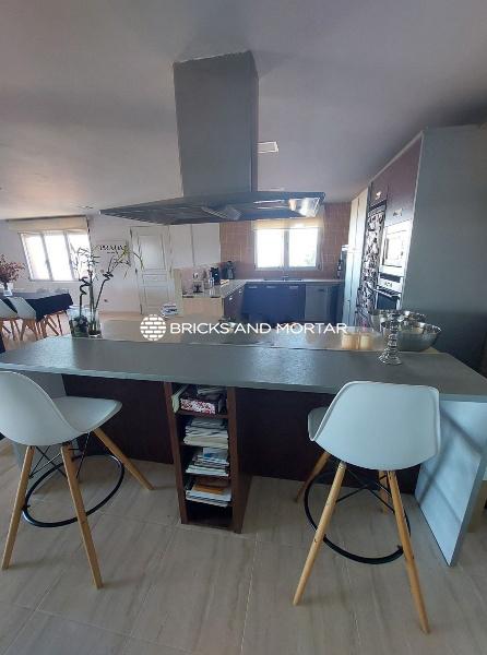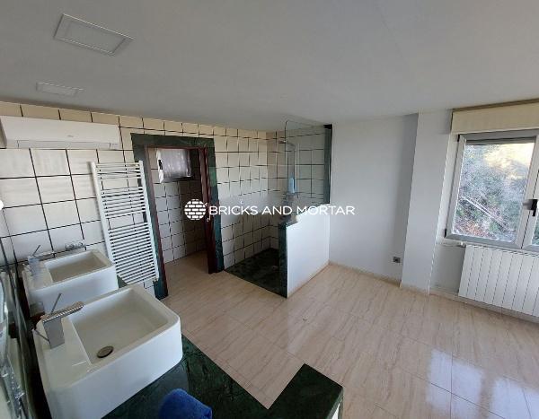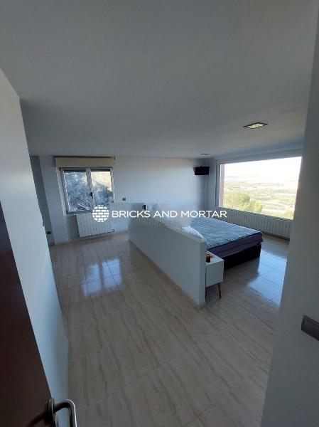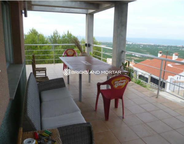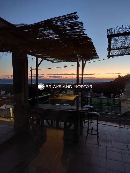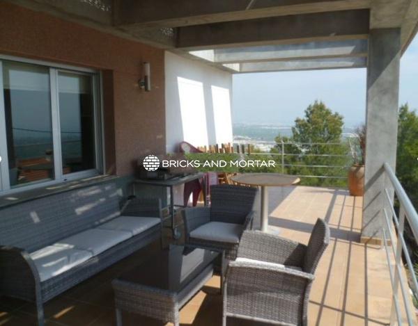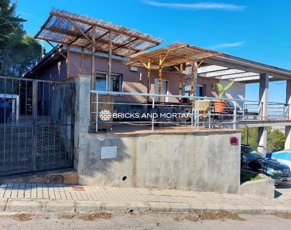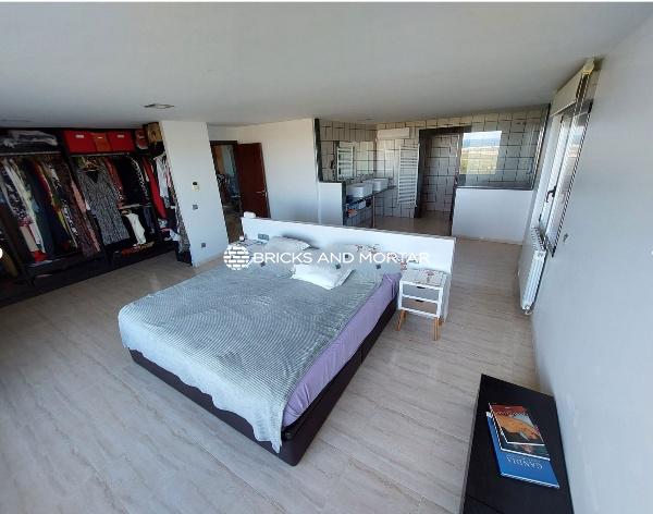 This immaculate double-storey detached house showcases an expansive open-plan living area spanning 90m2. The heating system is powered by a Diesel boiler, while internal stairs grant access to the upper floor. This upper floor boasts a magnificent master suite measuring 50m2, complete with a walk-in closet and en-suite bathroom. The ground floor encompasses a delightful 100m2 space combining the living room and kitchen, alongside an additional individual bathroom and bedroom featuring a built-in closet. The property boasts terraces on both levels, offering breathtaking sea views. The plot spans a generous 1200m2. This property embodies the essence of a detached house or chalet, providing a total built area of 450m2 and a functional living space of 315m2. It comprises three bedrooms, two bathrooms, a terrace, and a closed garage of 50m2. The house remains in excellent condition. Fitted wardrobes and a storage room provide ample storage options. The orientation of the property captures the best light, facing south, east, and west. Additional luxuries include air-conditioning and a beautifully maintained garden.