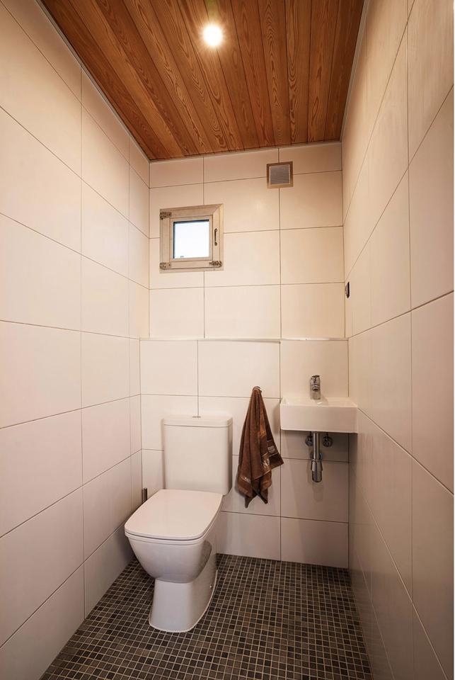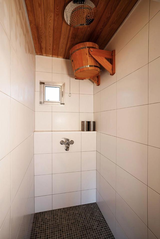 Large steam room, underfloor heating, shower, toilet, rest room.