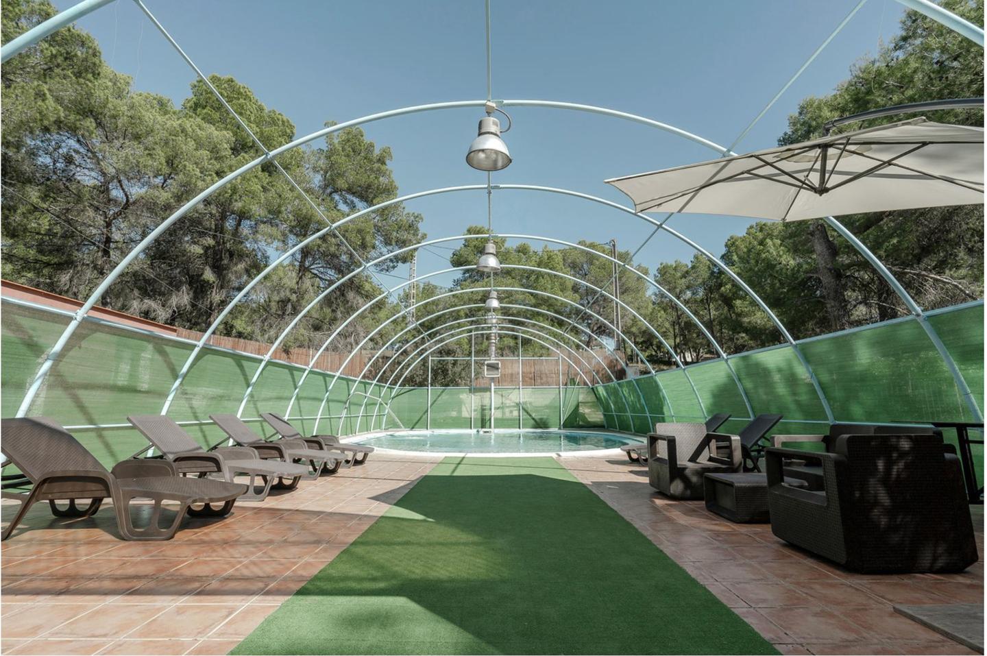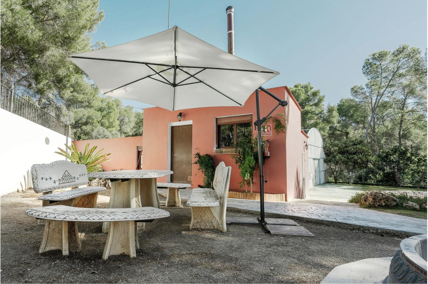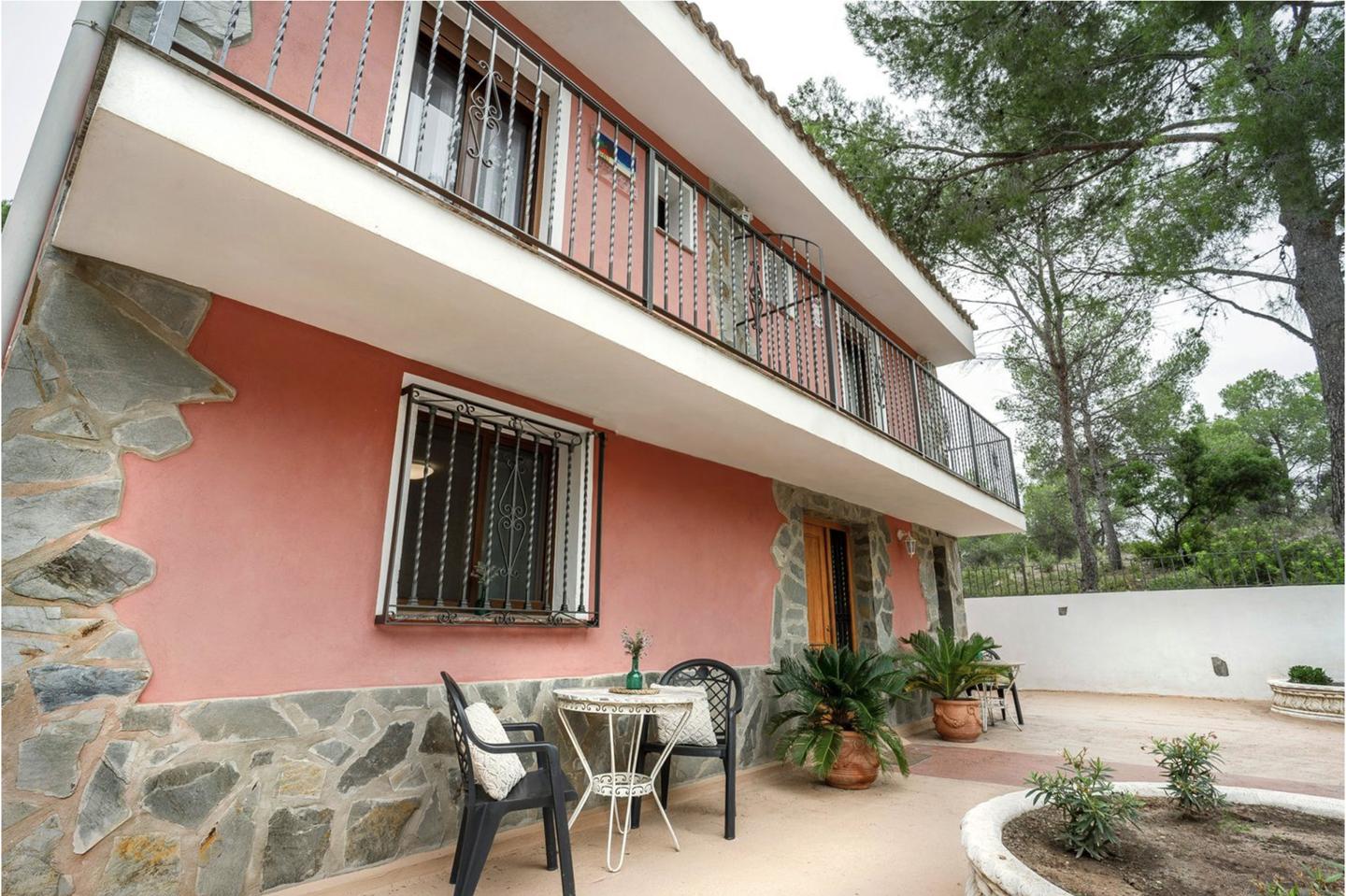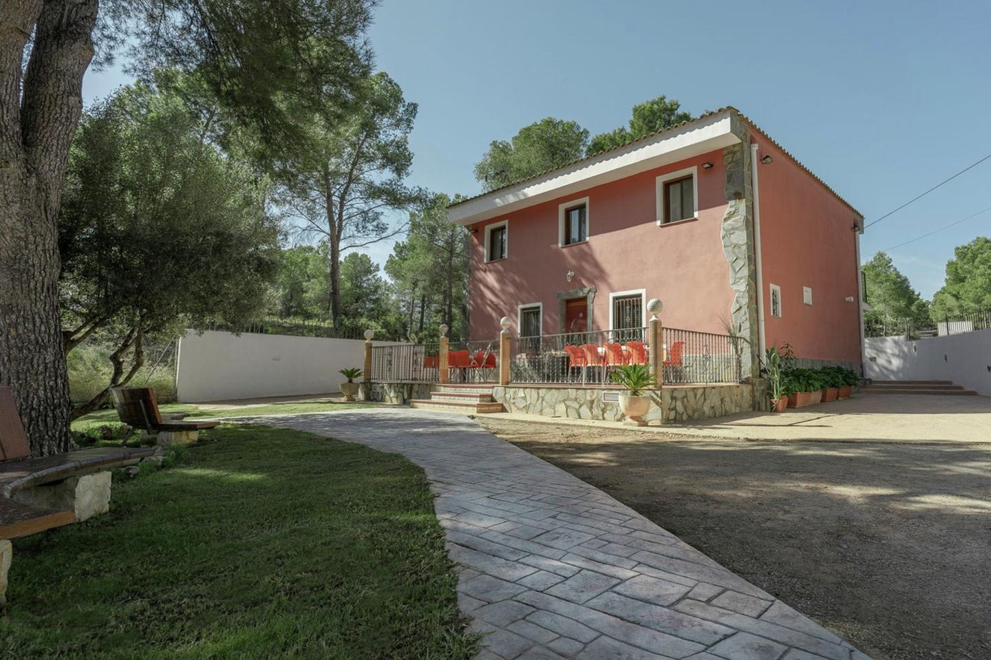The hotel has 2 floors, 6 suites, 4 bathrooms, kitchen, living room with fireplace, terrace. Enclosed private area in the Serra Calderona conservation area. Outdoor barbecue, swimming pool, wooden house for children, swimming pool.