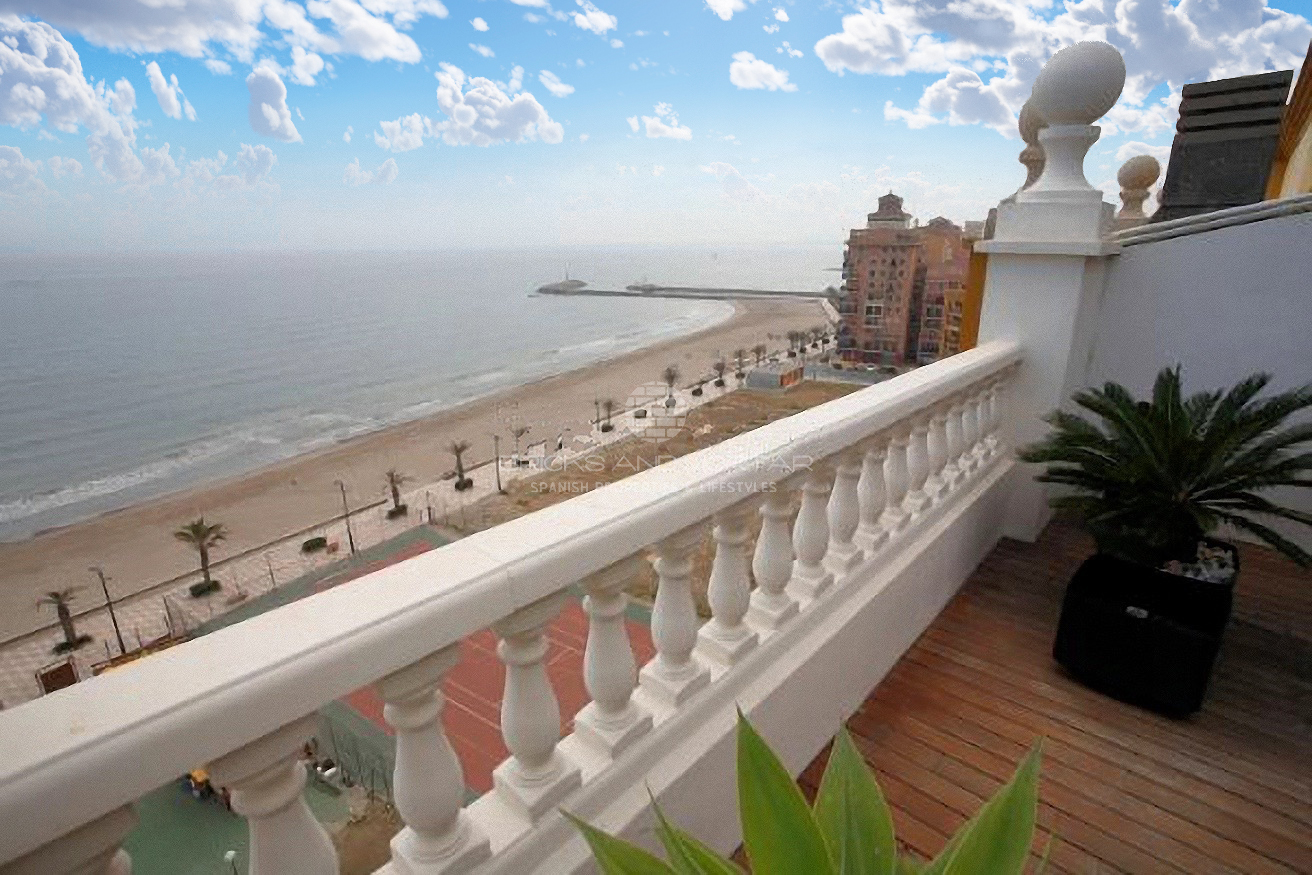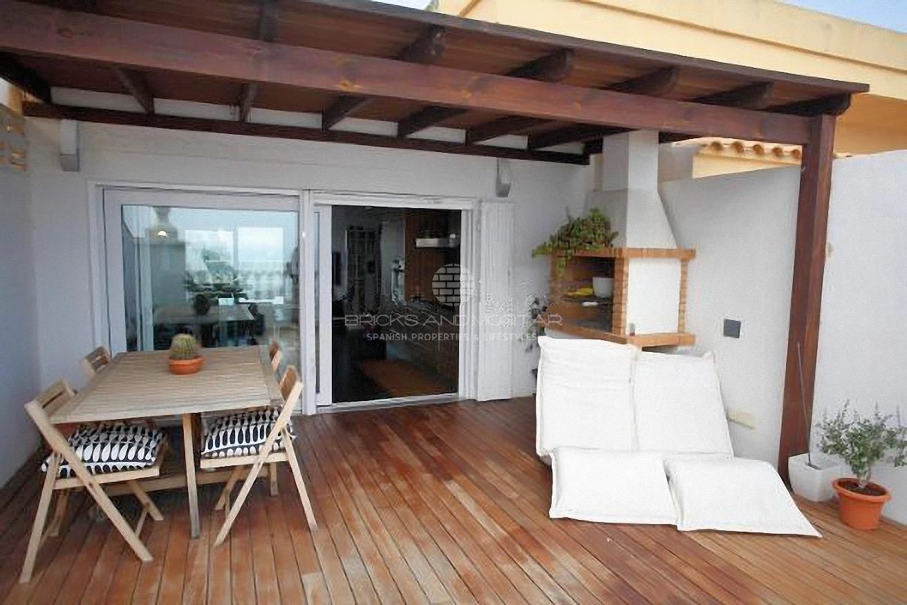 We present this modern duplex penthouse on a private estate in Port Saplaya in the town of Alboraya only 10 minutes from Valencia City centre.