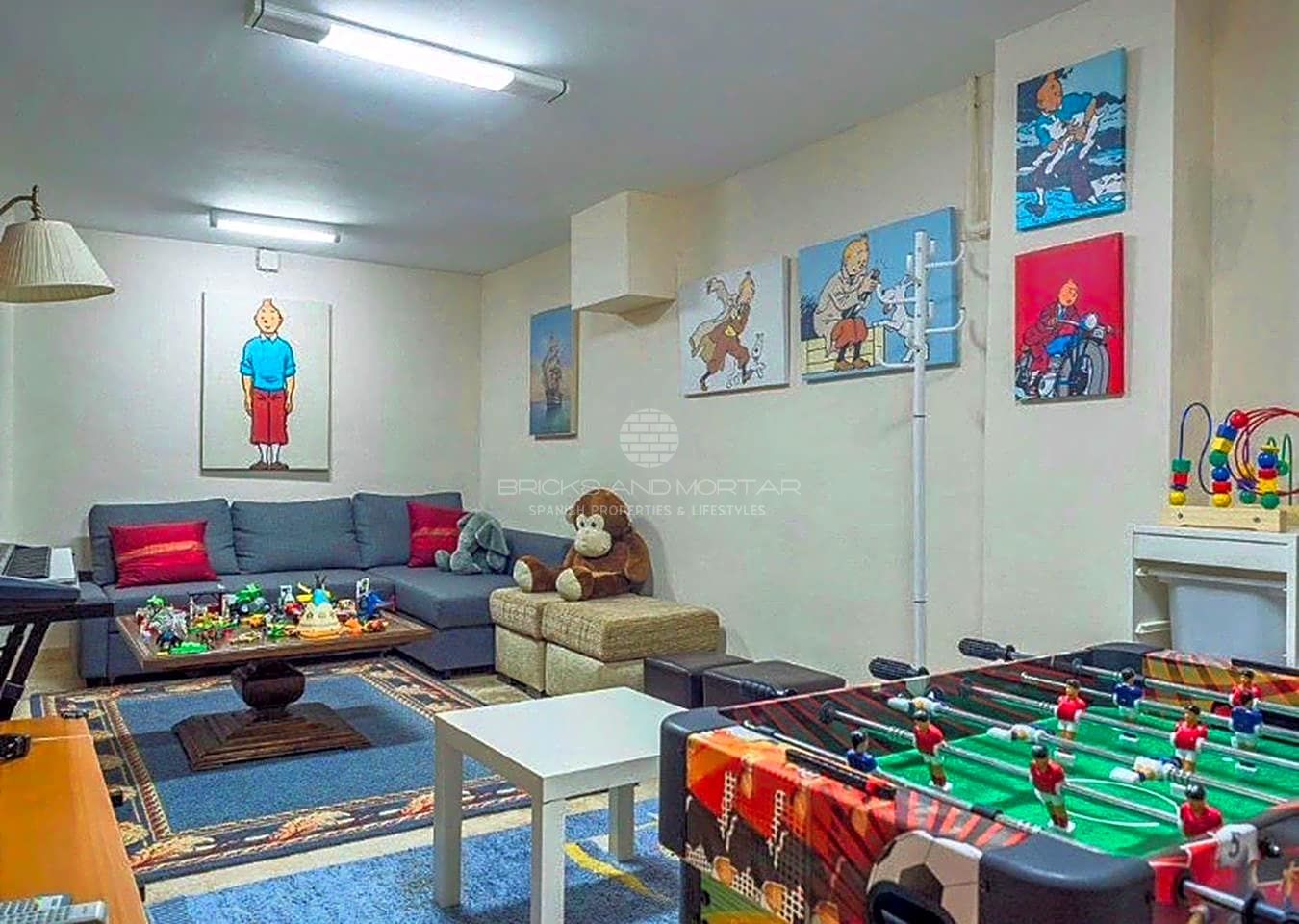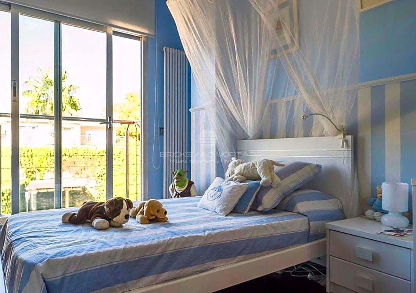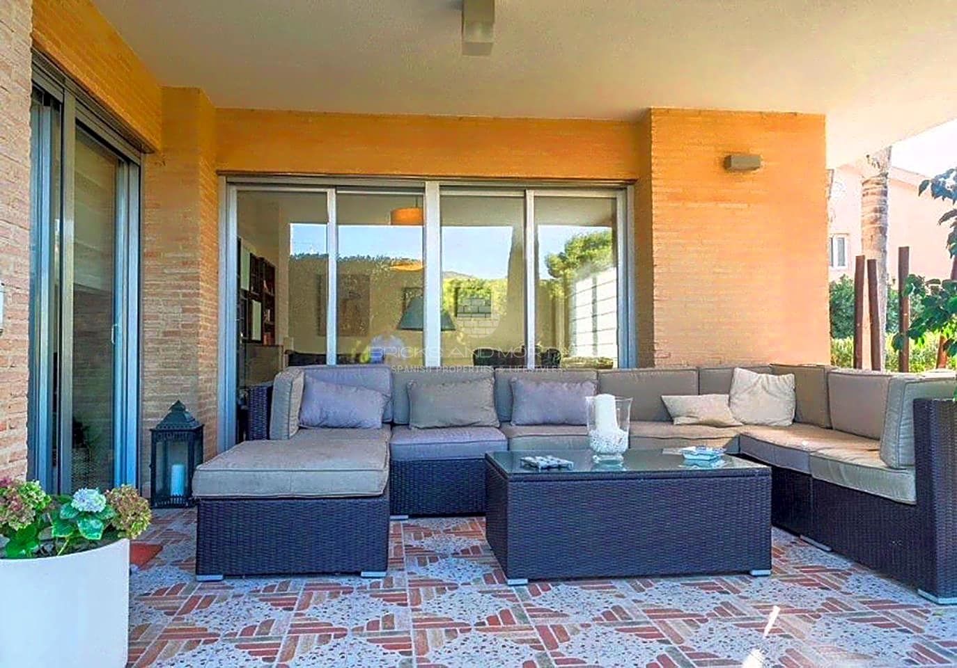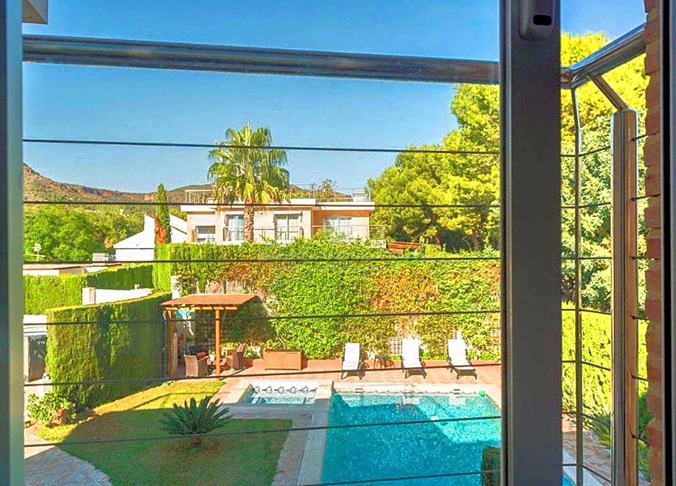 The villa has a side door that gives access to a pedestrian street that leads to Alfinach Country Club, which occupies a large plot of more than 25,000m2 with Magnificent sports facilities (football field, tennis courts, paddle courts, swimming pools, golf, restaurant, projection room and various playgrounds) The Alfinach urbanization has private security for 24 hours. Location: It is located at the foot of the Sierra Calderona and 7 kms from the beach of Puzol. Its proximity to the city of Valencia (18 kms) make it a privileged place to live throughout the year, since the most prestigious schools in the province (two of them bilingual) are located in its surroundings. ideal place to enjoy nature and various leisure activities (cycling routes through the Sierra Calderona, hiking, water sports, horse riding …) since in its vicinity are located spaces such as the marinas of La Pobla de Farnals and Canet, the Scorpion golf club in Bétera, horse riding in Monte Picayo … The urbanization is perfectly communicated thanks to the A-7 motorway or the Puzol train station that connects quickly and comfortably this town with the North Station of Valencia. Likewise, the Manises airport is 25 km away. of urbanization.