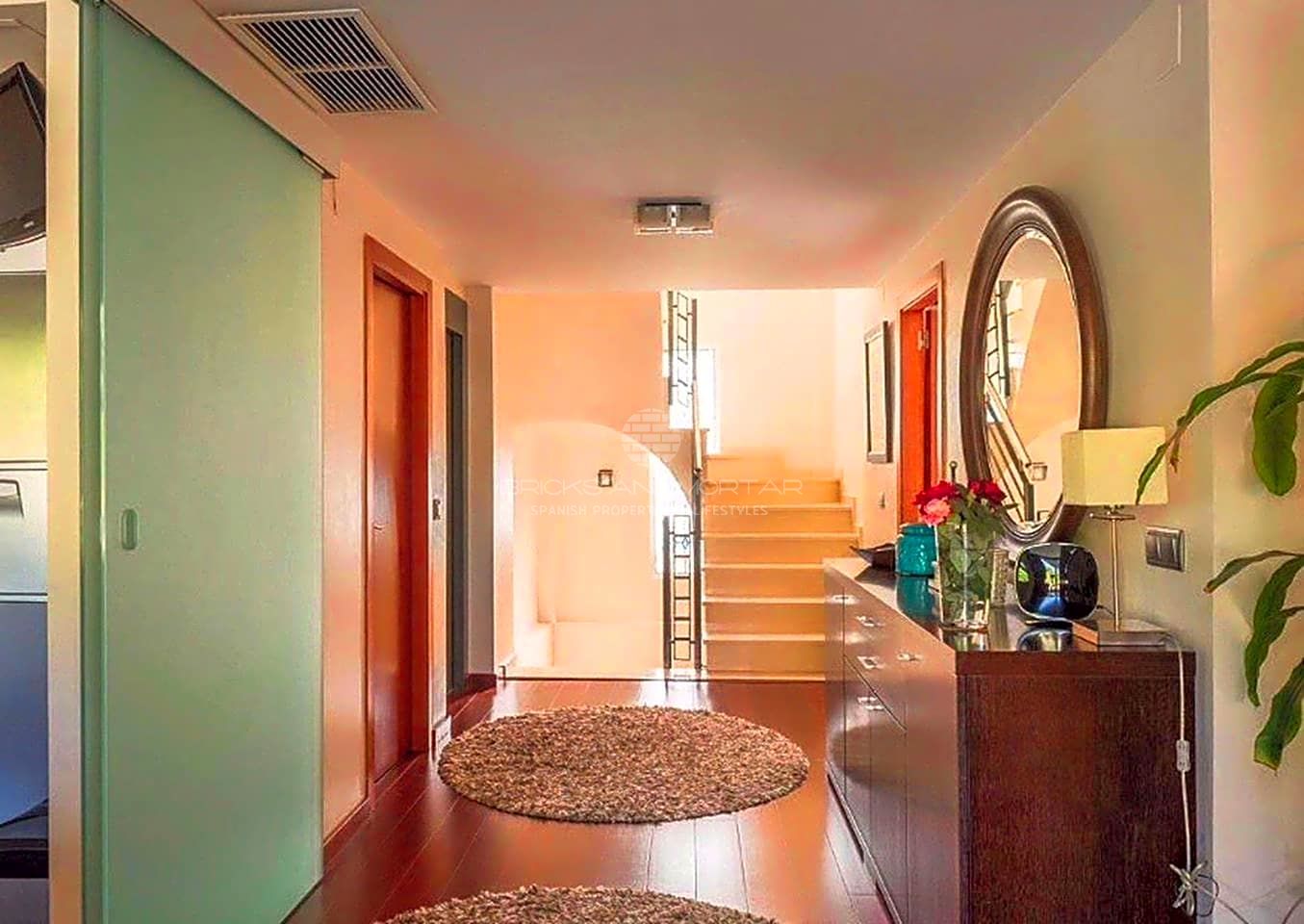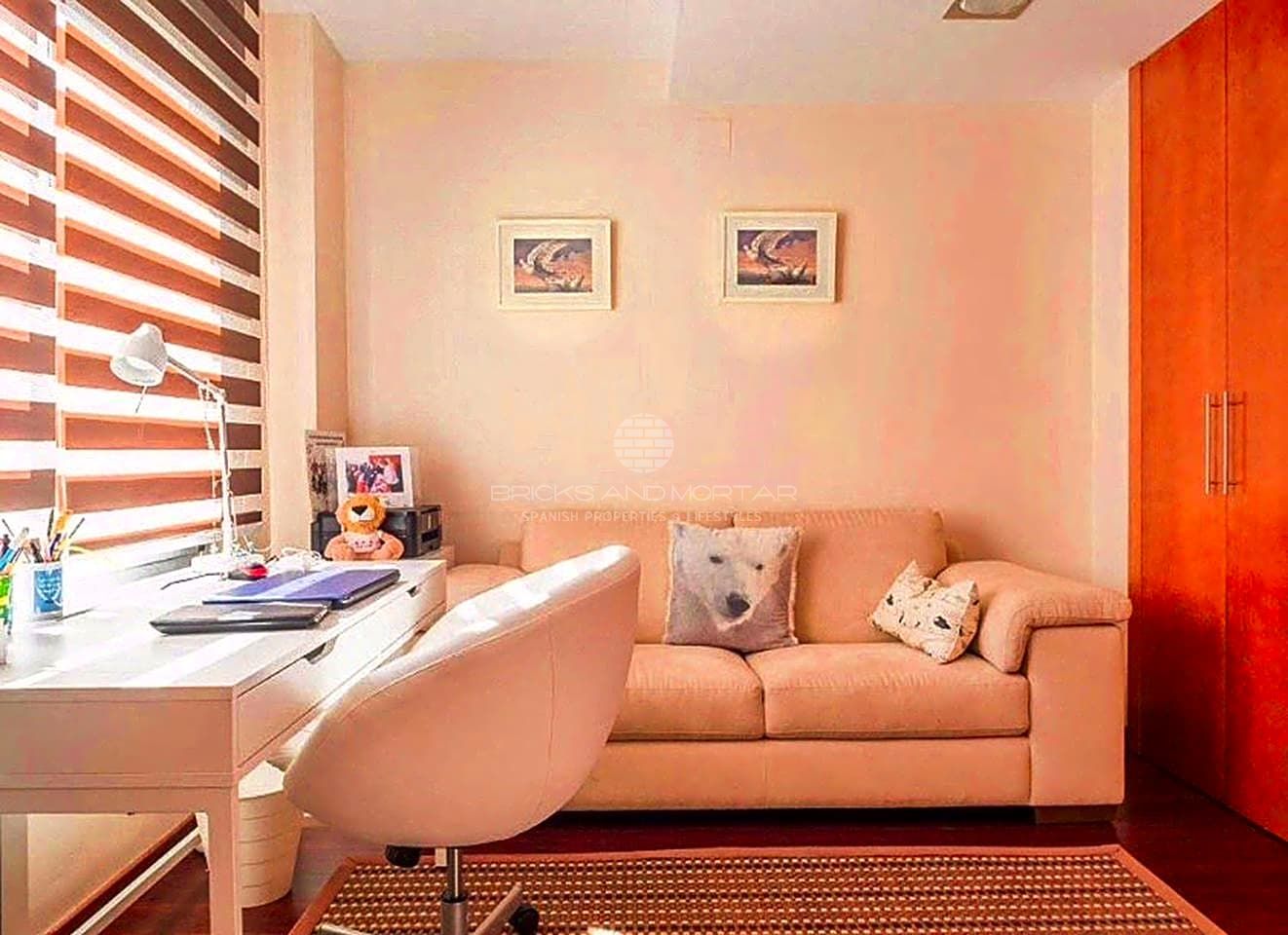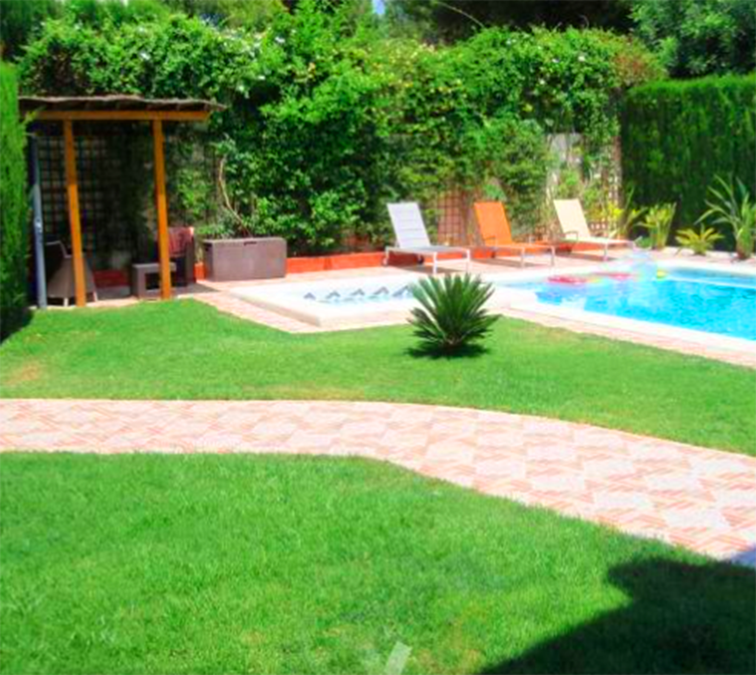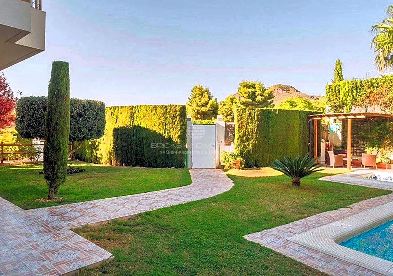 The villa has a side door that gives access to a pedestrian street that leads to Alfinach Country Club, which occupies a large plot of more than 25,000m2 with Magnificent sports facilities (football field, tennis courts, paddle courts, swimming pools, golf, restaurant, projection room and various playgrounds) The Alfinach urbanization has private security for 24 hours. Location: It is located at the foot of the Sierra Calderona and 7 kms from the beach of Puzol. Its proximity to the city of Valencia (18 kms) make it a privileged place to live throughout the year, since the most prestigious schools in the province (two of them bilingual) are located in its surroundings. ideal place to enjoy nature and various leisure activities (cycling routes through the Sierra Calderona, hiking, water sports, horse riding …) since in its vicinity are located spaces such as the marinas of La Pobla de Farnals and Canet, the Scorpion golf club in Bétera, horse riding in Monte Picayo … The urbanization is perfectly communicated thanks to the A-7 motorway or the Puzol train station that connects quickly and comfortably this town with the North Station of Valencia. Likewise, the Manises airport is 25 km away. of urbanization.